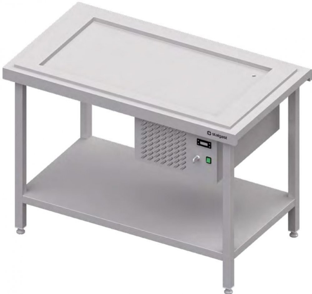 Centrální stůl s chladící deskou 3x GN 1/1, 1245x750x880 mmMateriál: vyroben z nerezové oceliChlazení: gravitačníIzolace: tepelná izolaceDigitální displej: zobrazení teplotyTeplota desky: -2 až +5 °CFiltr: proti prachuElektrický příkon: 230 WNapájení: 230 V, 50 HzSystém spojení pracovních desek: do roviny s ostatními zařízeními z linie