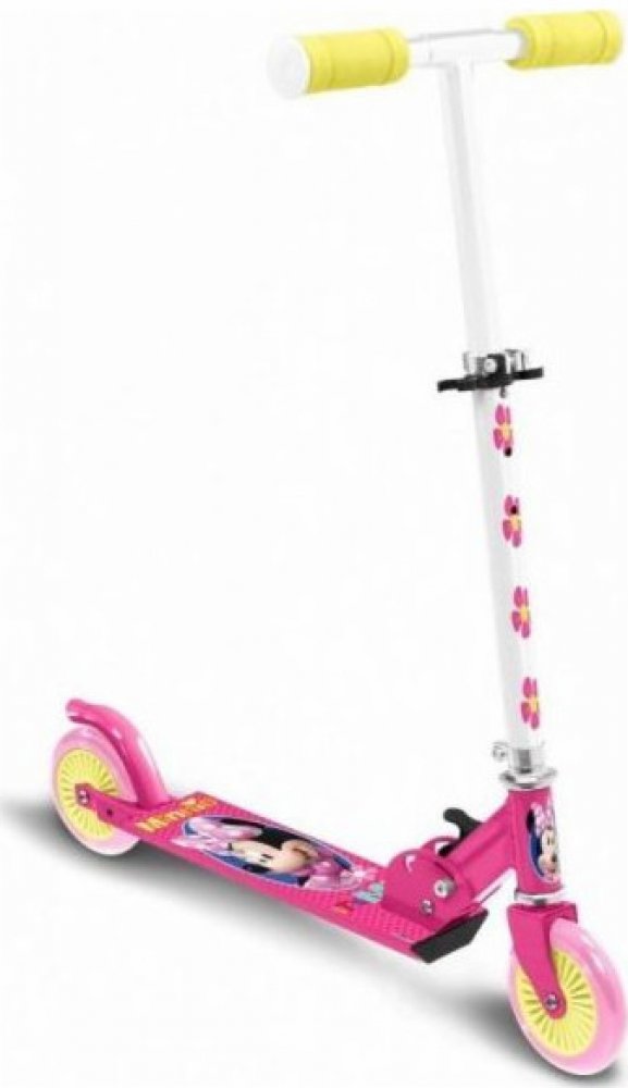 Dvoukolová koloběžka s licencí Minnie Mouse. Má lehkou hliníkovou konstrukci, protiskluzovou plošinu, brzdu zadního kola a odolná kolečka z PVC. Lze ji snadno a rychle složit pro snadnou přepravu a skladování. velikost koleček: 120 mm nastavitelná výška řídítek: rozměry plošiny: délka 35 cm, šířka 10 cm Maximální zatížení: rozměry balení: 50 kg: balení: 21 x 61 x 10 cm Věk: 4+ Razítko Minnie Mouse...
