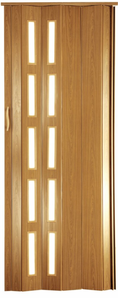 Vyrobeno z vysoce kvalitního PVC materiálu matná struktura dřeva panely jsou spojeny pružnými, silnými závěsy prosklení matně propouštějící světlo dveře jsou rozšiřitelné na 2 m šíře možnost zkrácení dveří do výšky skel mají pohodlnou rukojeť pro zavření a uzamknutí s magnetem odolné proti poškrábání, snadno se udržují kompletní sada a návod k instalaci Rozměry pro dveře 80 cm: