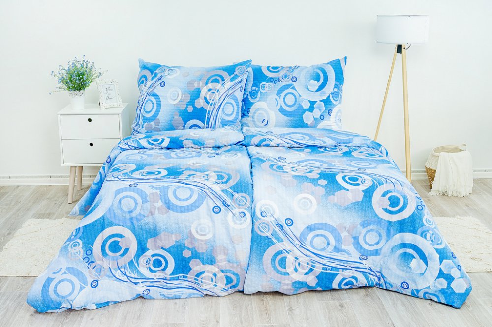 Světlé modré povlečení vaší ložnici dodá svěží a vzdušný nádech. Zvláště v případě kruhů jako motivů