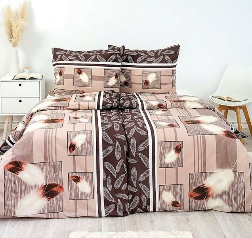 Působivý vzor hnědých odstínů barev s dominantou bílého pírka..Moderní design hladkého plátěného ložního povlečení, které je vyrobeno ze 100% bavlny. Pevný materiál je vysoce odolný proti mechanické zátěži a vyznačuje se dlouhou životností. Nejen alergici uvítají možnost žehlení, čímž docílíte hygienickou čistotu prádla. Zapínání je na knoflíky, kte...
