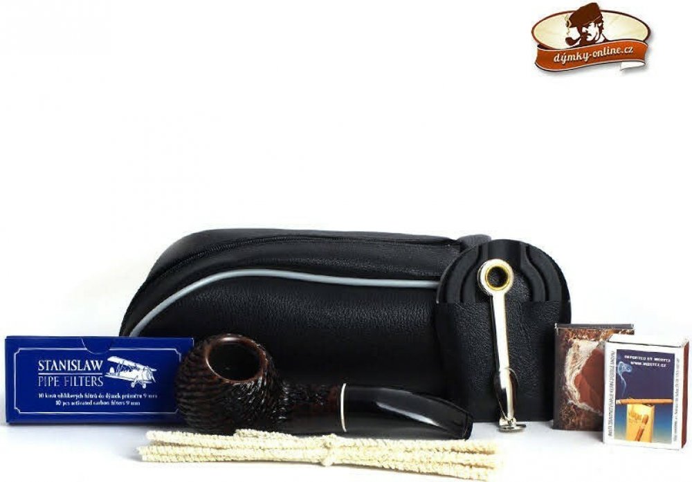 Tato sada je vhodná pro začínající kuřáky dýmky. Obsahuje vše co pořebuje začíbající kuřák: Sada Stanislaw Bag Set obsahuje: 1 x Pouzdro Golf Bag 1 x Dýmku Stanislaw 1 x Filtry Stanislaw/ 10 1 x Čističe Blitz 1 x Krystaly Denicotea 1 x Dusátko 1 x Stojánek na dýmku 1 x Zápalky Všechny dýmky Stanislaw vyobrazené na fotografiích jsou vždy originály, které obdržíte po jejich případném objednání. Každý kus je nafocený samostatně před nasazením na naše stránky.