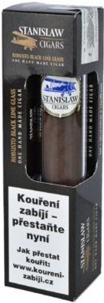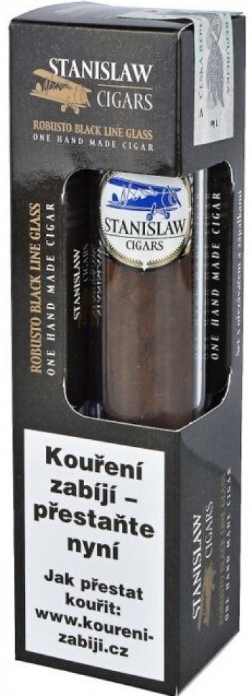 Dárková sada - dominikánský doutník Stanislaw Robusto Black Line Glass Set. Dárkové balení obsahuje ručně balený doutník, plastový doutníkový ořezávač a zápalky. Doutník z Dominikánské republiky má plnější a silnější chuť. Samotný doutník je balený ve skleněné tubě po 1 ks. Doutníkový set Stanislaw je vhodný nejen pro znalce doutníků, tak i pro začínající nebo příležitostné kuřáky.