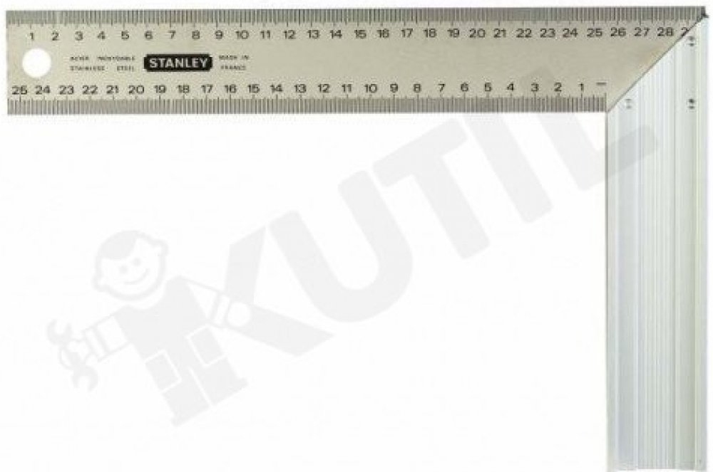 Úhelník tesařský Stanley lepší viditelnost díky zbarvené stupnici pro vyznačení úhlů 90° a 45° rozměry v tabulce s variantami