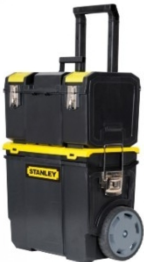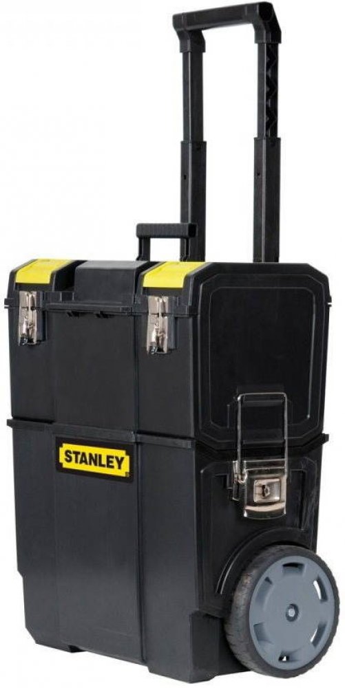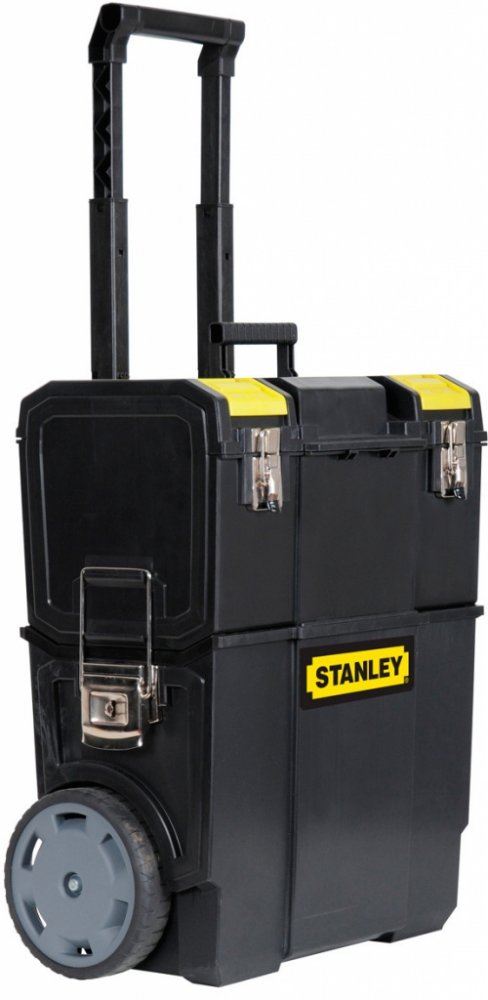Box na nářadí Stanley 1-70-327 je pojízdná sada kufrů, kterou využijete pro přepravu nářadí, příslušenství, materiálu a různých dalších pracovních pomůcek. Tuto soupravu tvoří odnímatelný vrchní box, který poskytuje mnoho místa pro uložení nářadí a několik přihrádek na menší nářadí a příslušenství. Samotné víko horního kufru tvoří dva organizéry, které využijete například k uložení vrtáků, šroubků apod. Součástí je také vyjímatelná zásuvka, se kterou máte nářadí a materiál po ruce i při práci ve výškách. Spodní část umožňuje úschovu i velkých kusů nářadí, přilby či materiálu. I při plném zatížení je jízda s kufrem pohodlná díky 7" kolečkám a výklopné rukojeti. Kufry spojíte pomocí velkých přezek, které zaručují spolehlivé zajištění kufrů.