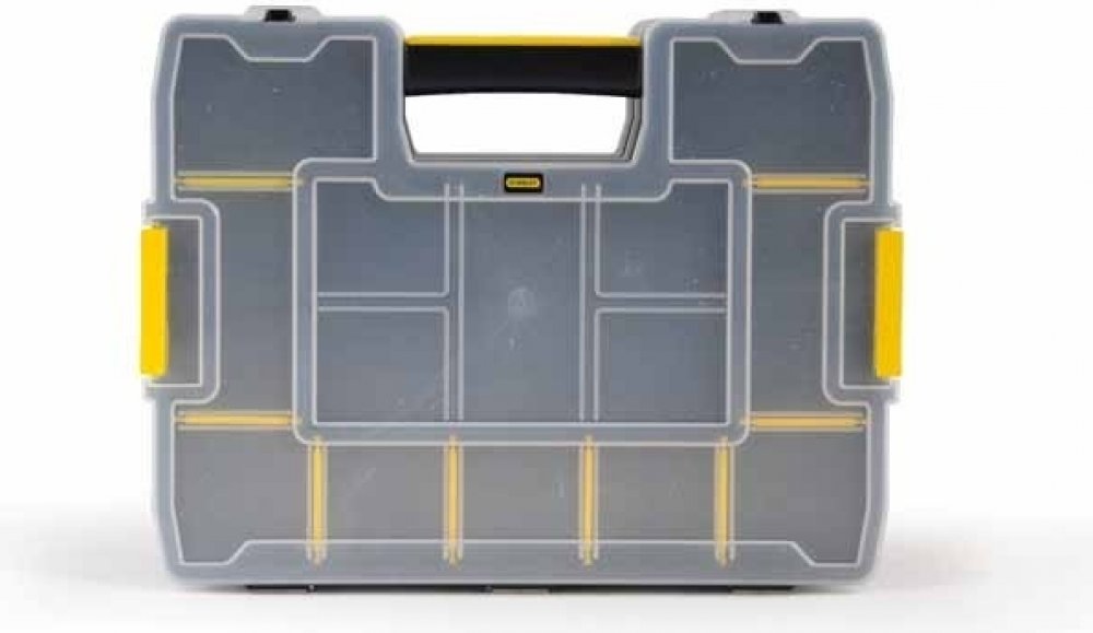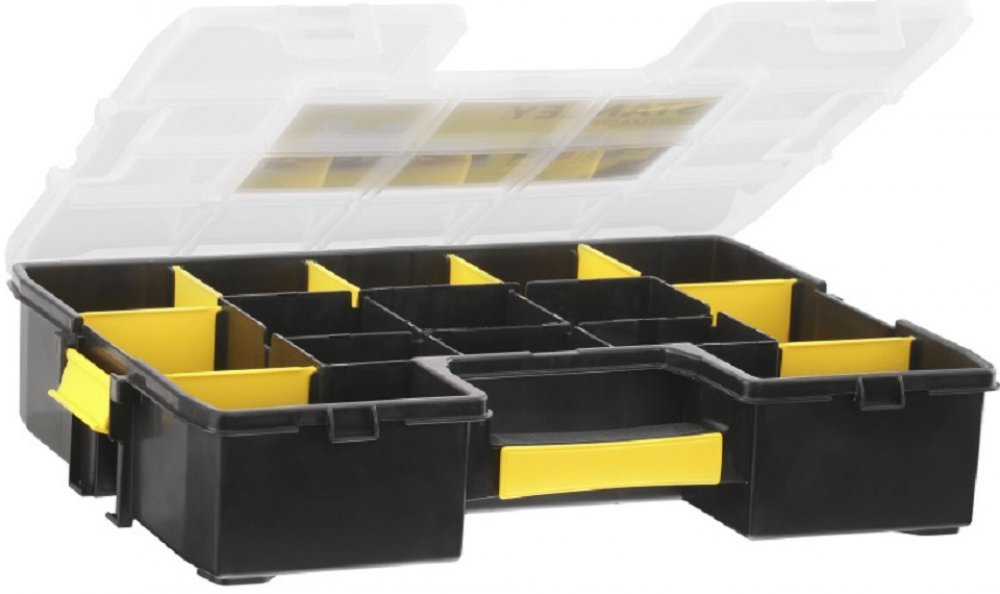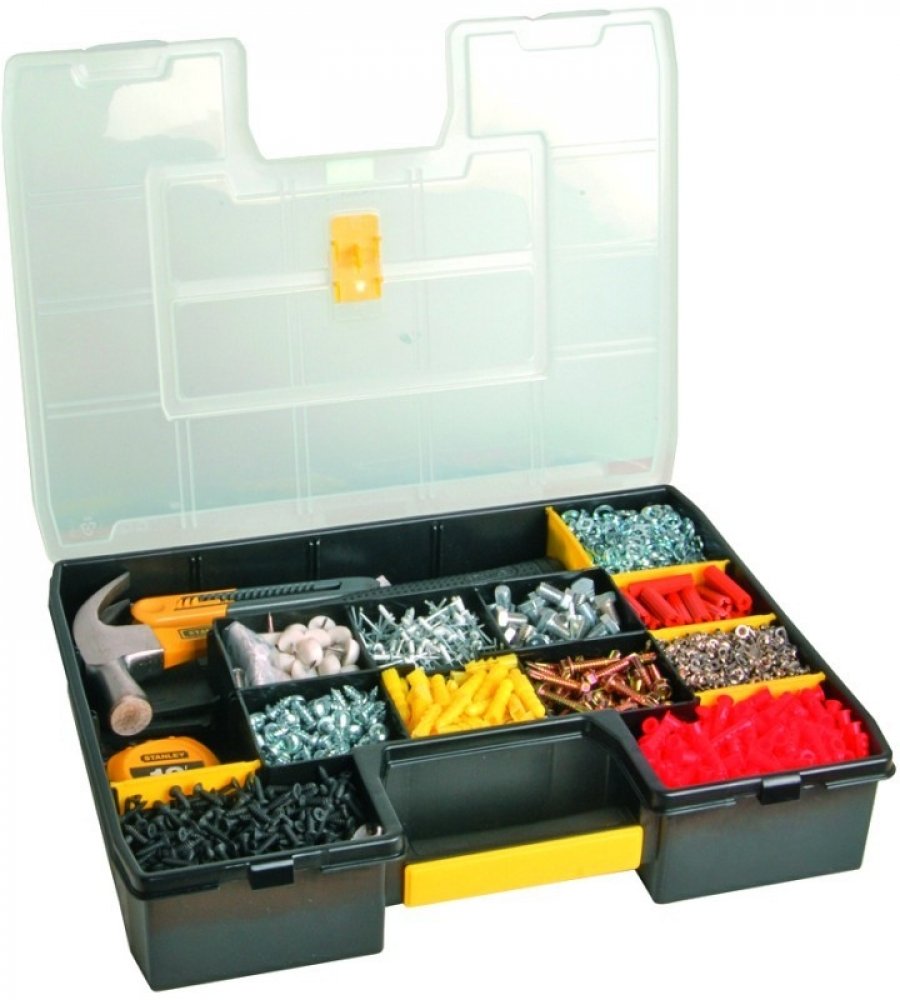 Box na nářadí STANLEY 1-94-745 / výrobce: Stanley Jedinečně zahnuté přihrádky pro snadné uskladnění nářadí jako jsou kladiva apod. Vyjímatelné rozdělovače dovolují nastavovat různé velikosti přihrádek. Speciální design víka zajišťuje pevné držení přihrádek
