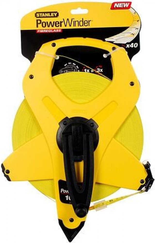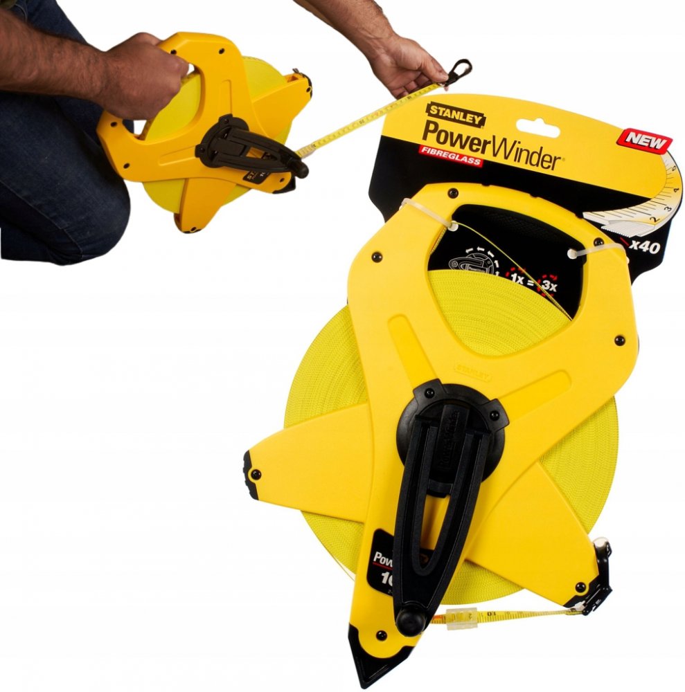 2-34-777 - Stanley - Pásmo PowerWinder s plastovou páskou 100m Stanley 2-34-777 - Měření | Měřící pásma - Pásmo PowerWinder 100m s plastovou páskou Stanley 2-34-777 Skládací koncový háček pro přesný počátek měření. Šířka pásky 13 mm. 3x rychlejší navíjení díky převodu kličky 3:1. Oboustranný potisk měřicí pásky na jedné straně metrická na druhé coulová. Zesílený konec pásky pro delší životnost. Koncové oko pro snadné vytažení a zachycení. Pryžový povrch rukojeti pro pevné držení. Tlumič nárazu koncového oka při navíjení. Bimateriální ergonomická rukojeť. Odolná a nárazuvzdorná konstrukce pro prodlouženou životnost. Třída přesnosti II.
