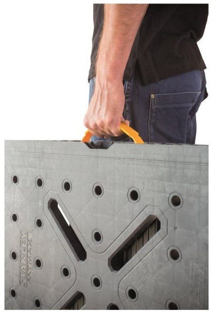 STANLEY FMST1-75672 FatMax Pracovní stůl je robustní skládací pracovní stůl s nosností až 455 kg, ideální pro dílny, stavby i domácí kutily. S pracovní plochou o rozměrech 85 x 60 cm poskytuje dostatek prostoru pro různé úkoly. Díky kompaktním rozměrům a jednoduchému skládacímu mechanismu je snadno přenosný a skladný. Vyroben z kombinace odolného plastu a kovu zaručuje dlouhou životnost a stabil...