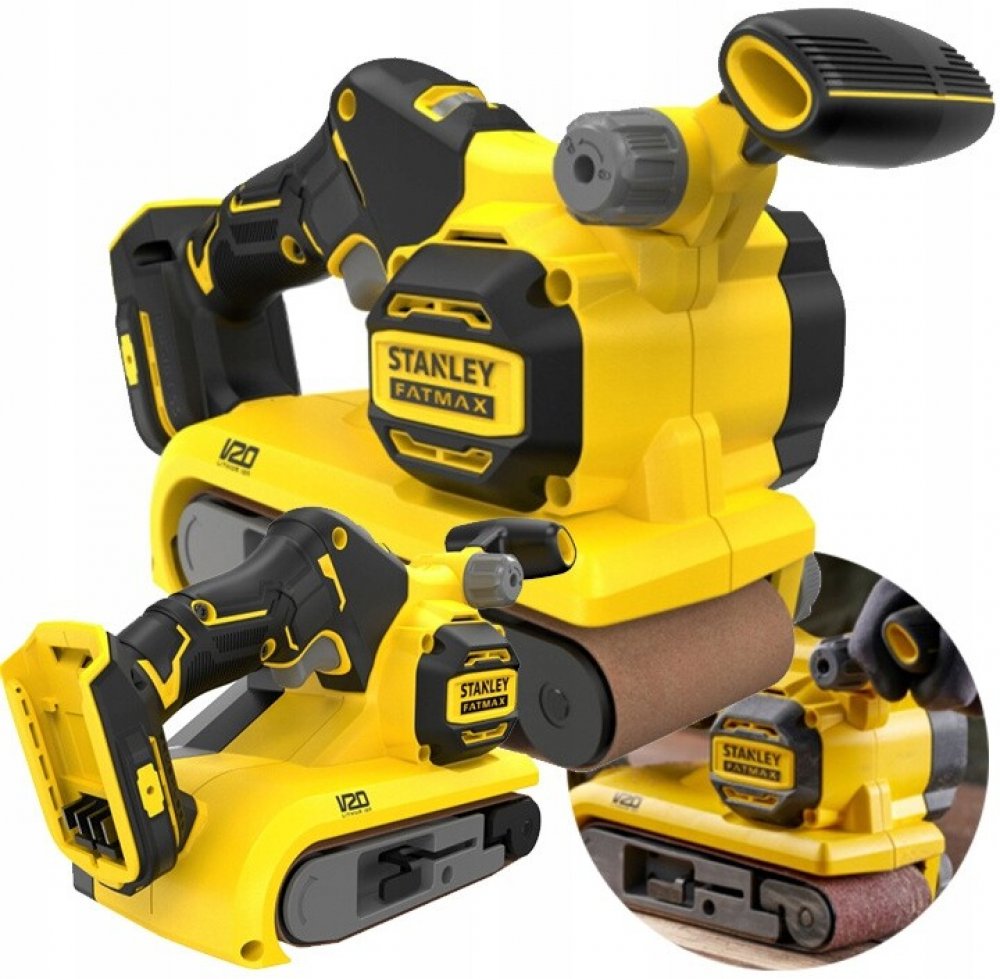 3.1 kg Stanley pásové 75 mm 18 V akumulátorové na dřevo pro silné odstranění materiálu pro mobilní úlohy rychloupínání bezkartáčový s nízkými vibracemi a hlučností