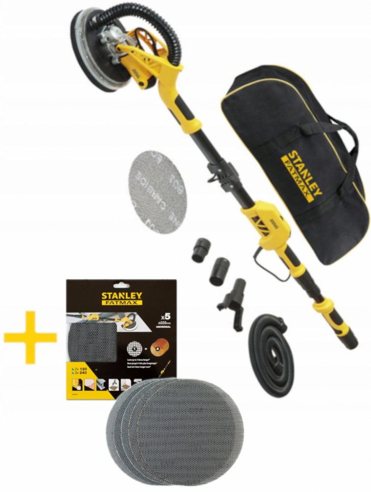 750 W 225 mm 1700 ot/min 3.75 kg Stanley excentrické 225 mm 750 W 230 V poloprofesionální elektrické na sádrokarton pro obecnou přípravu povrchu pro mobilní úlohy suchý zip kartáčový 740 × 270 × 260 mm se středním komfortem