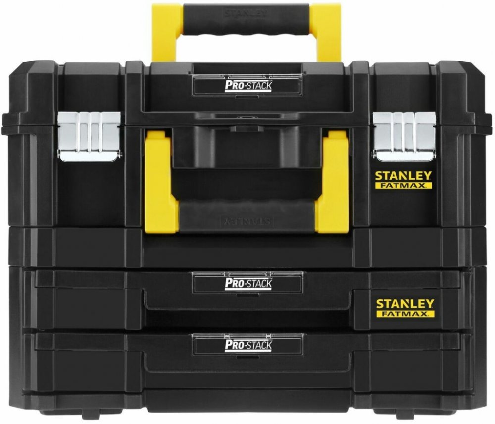 Velký kufr na nářadí TSTAK ze série FatMax od značky Stanley poskytuje řemeslníkům a domácími kutilům možnost praktického uložení jejich přístrojů a příslušenství. Do velké přihrádky, která je přístupná z horní strany, lze uložit nástroje jako aku šroubováky, úhlové brusky nebo přímočaré pily. Přihrádku lze díky adaptivní molitanové vložce upravit a zajistit tak spolehlivé uložení konkrétního přístroje. Bytelné kovové zámky jsou pak zárukou ochrany a bezpečnosti nářadí. Obě spodní přihrádky jsou koncipovány jako šuplíky, které jsou opatřeny vnitřními organizéry a umožňují tak zachovat pořádek i při ukládání drobných dílů. Díky tomu můžete příslušenství k nástrojům přepravovat přímo s nástrojem samotným a mít jej tak vždy po ruce. Postranní západky umožňují spolehlivé spojení dvou různých TSTAK boxů. Velký kufr na nářadí disponuje i možností umístění visacího zámku a držákem na etikety.