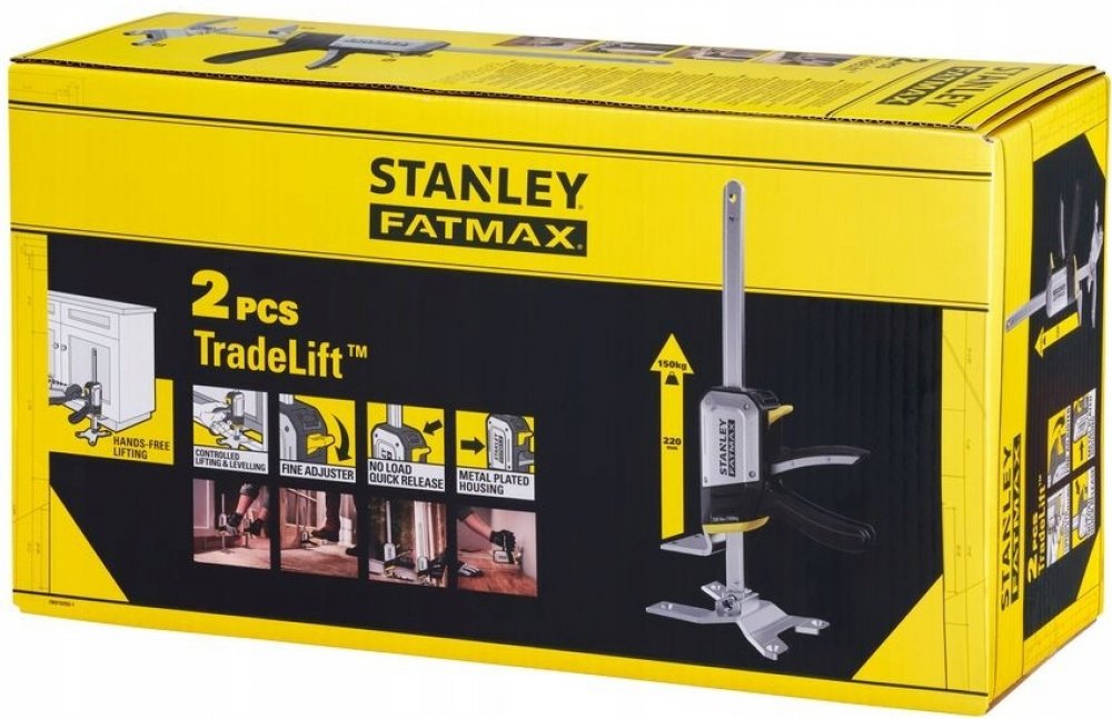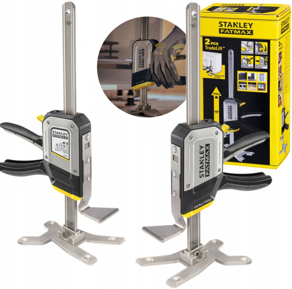 Jednoruční montážní nástroj Tradelift STANLEY FMHT83552-1 Univerzální jednoruční montážní nástroj pro zvedání a spouštění, natahování, vyrovnávání a přidržení Bezpečné a snadné použití, snižuje riziko zranění a nehod, při vyrovnávání a držení těžkých nebo nepohodlných předmětů, jako jsou plechové materiály, dveře a velké spotřebiče Bezpečná práce, žádné volně pohybující se části, žádné nebezpečí p...