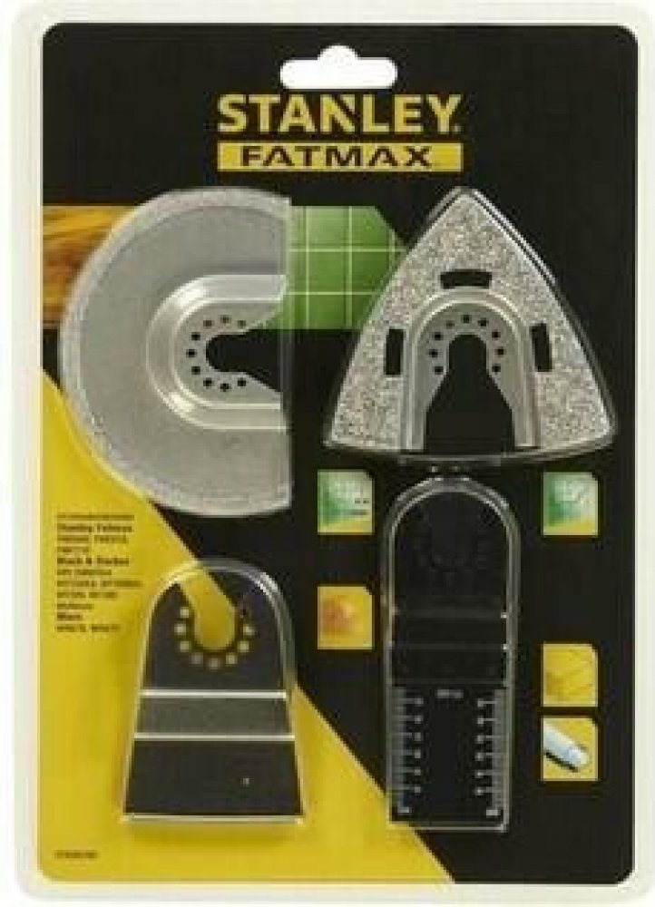 Stanley Segmentový karbidový kotouč Ø 92 mm, tl.do 3 mm, delta karbidová rašple 73 x 75 mm, pevná škrabka HCS 52 x 26 mm, ponorný pilový list BiMetal 32 x 40 mm, 18 TPI - ST-STA26160-XJ