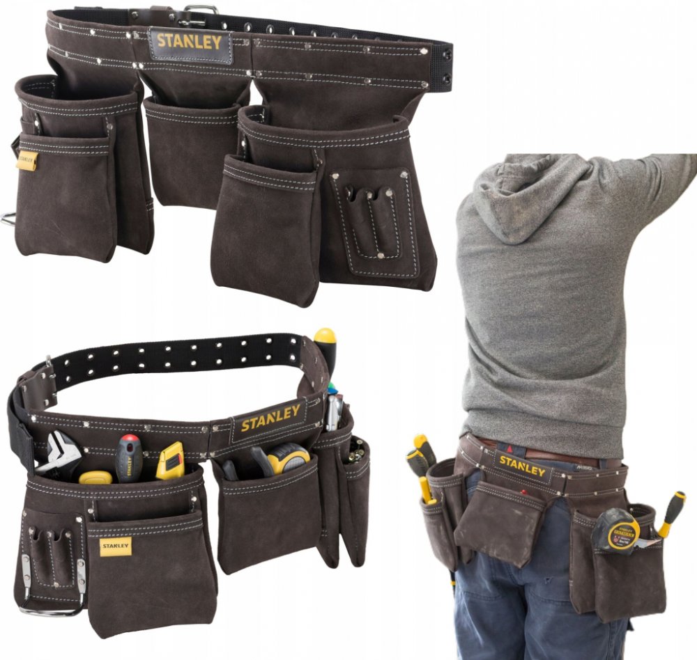 Kožený kapsa na nářadí Stanley STST1-80113 je ideální pro profesionální řemeslníky. Tento opasek se soupravou kapes využijete při práci ve výškách a na stavbě, kdy potřebujete větší množství drobného nářadí, spojovacích dílů a pracovních pomůcek. Opasek je vyroben z kvalitní kůže, navíc je opatřen bezpečnostními nýty a očky s ochranou proti korozi. Právě proto je skvěle připraven pro intenzivní používání. Tento opasek je vybaven pouzdry a kapsami pro uložení nářadí, hřebíků a metru. Opasek s délkou 145 cm pevně zajistíte pomocí spony se dvěma hroty.