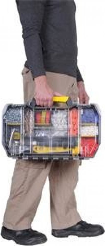 - Mobilní box na nářadí - Vanička s rukojetí pro ukládání a samostatnou manipulaci s drobnějším nářadím - Ve víku 2 organizery s polykarbonátovým krytem a 4 vyjímatelnými přihrádkami - Důmyslné vnitřní uspořádání - Zasouvací tažná rukojeť - Velká kolečka pro dobrou průchodnost v terénu - Lze použít i jako pracovní stolek - ve víku jsou žlábky s délkovou stupnicí pro založení ...