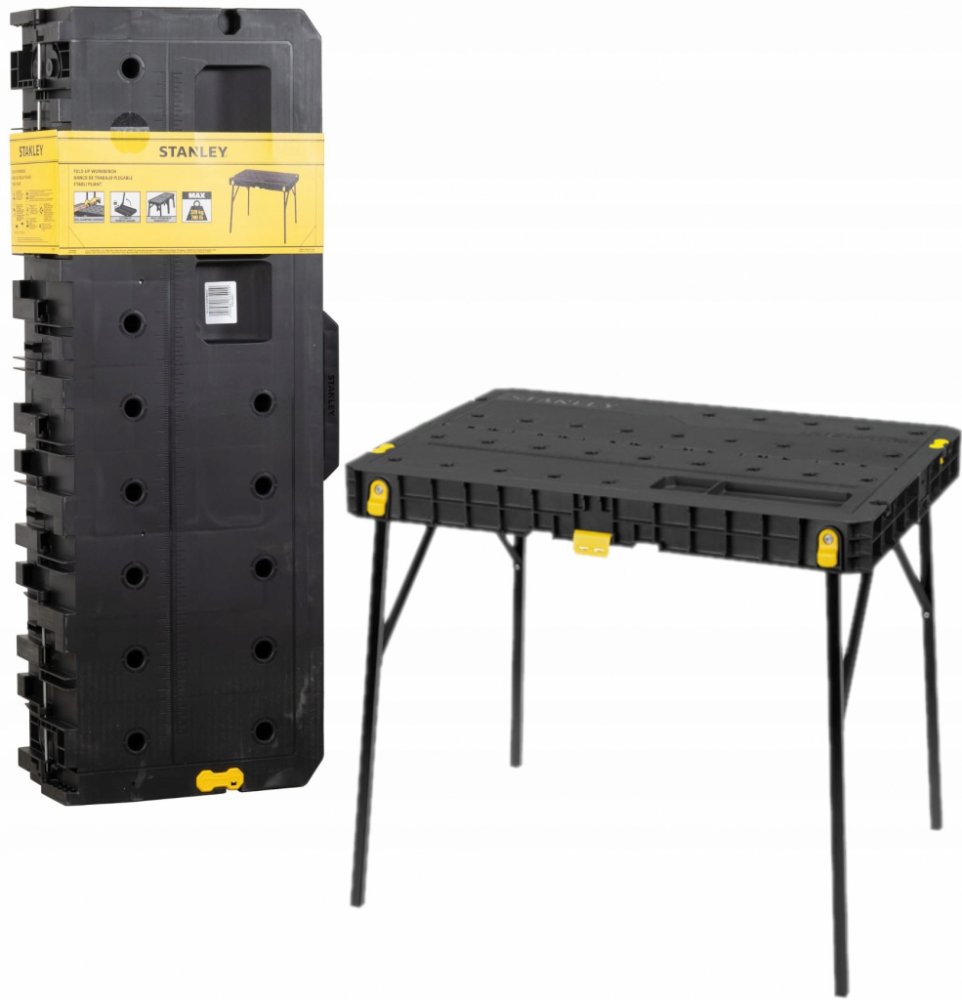 Pracovní stůl s pevnou konstrukcí o nosnosti až 320 kg. S možností spojení více stolů dohromady. Složení pracovního stolu pro snadné přenášení. Otvory v pracovní desce pro použití svorek, přihrádka na drobné nářadí v desce stolu.