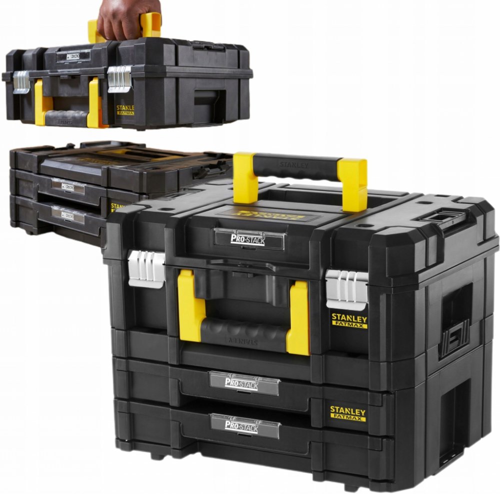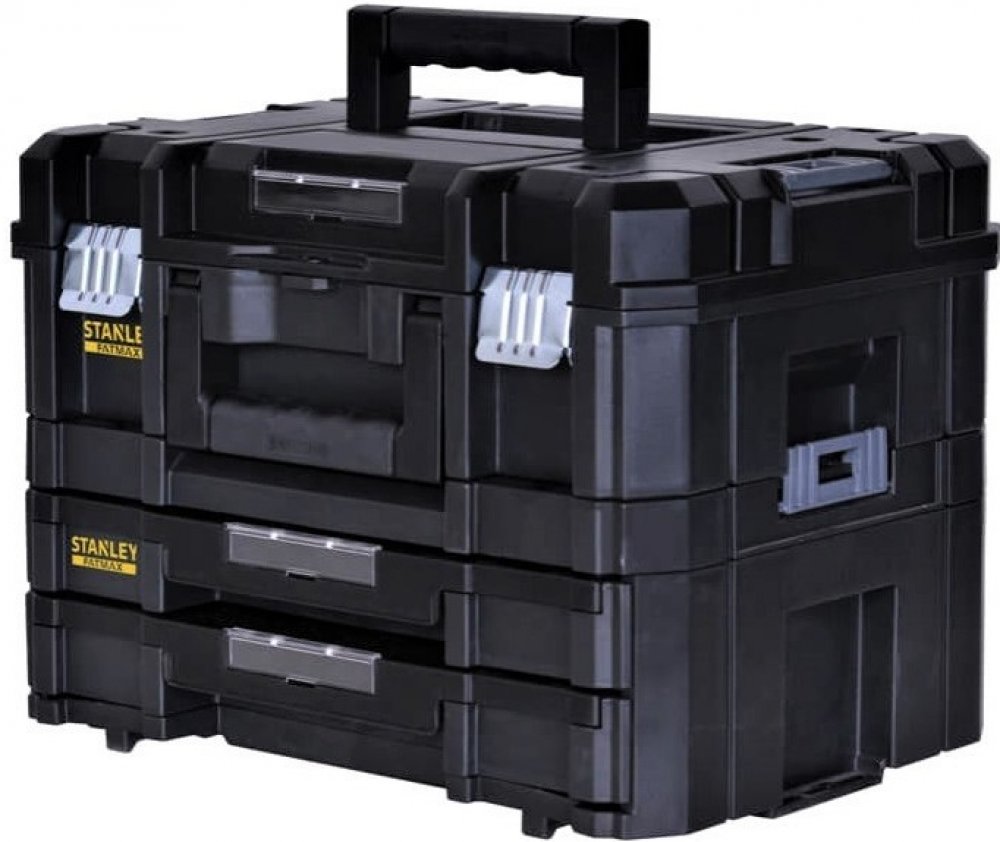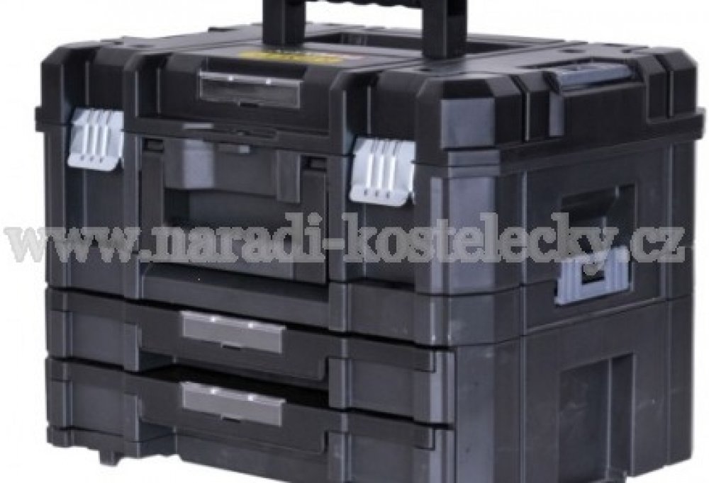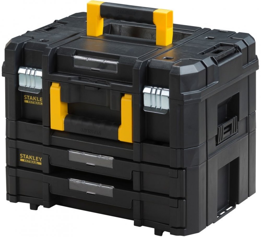 Velký kufr na nářadí TSTAK ze série FatMax od značky Stanley poskytuje řemeslníkům a domácími kutilům možnost praktického uložení jejich přístrojů a příslušenství. Do velké přihrádky, která je přístupná z horní strany, lze uložit nástroje jako aku šroubováky, úhlové brusky nebo přímočaré pily. Přihrádku lze díky adaptivní molitanové vložce upravit a zajistit tak spolehlivé uložení konkrétního přístroje. Bytelné kovové zámky jsou pak zárukou ochrany a bezpečnosti nářadí. Obě spodní přihrádky jsou koncipovány jako šuplíky, které jsou opatřeny vnitřními organizéry a umožňují tak zachovat pořádek i při ukládání drobných dílů. Díky tomu můžete příslušenství k nástrojům přepravovat přímo s nástrojem samotným a mít jej tak vždy po ruce. Postranní západky umožňují spolehlivé spojení dvou různých TSTAK boxů. Velký kufr na nářadí disponuje i možností umístění visacího zámku a držákem na etikety.