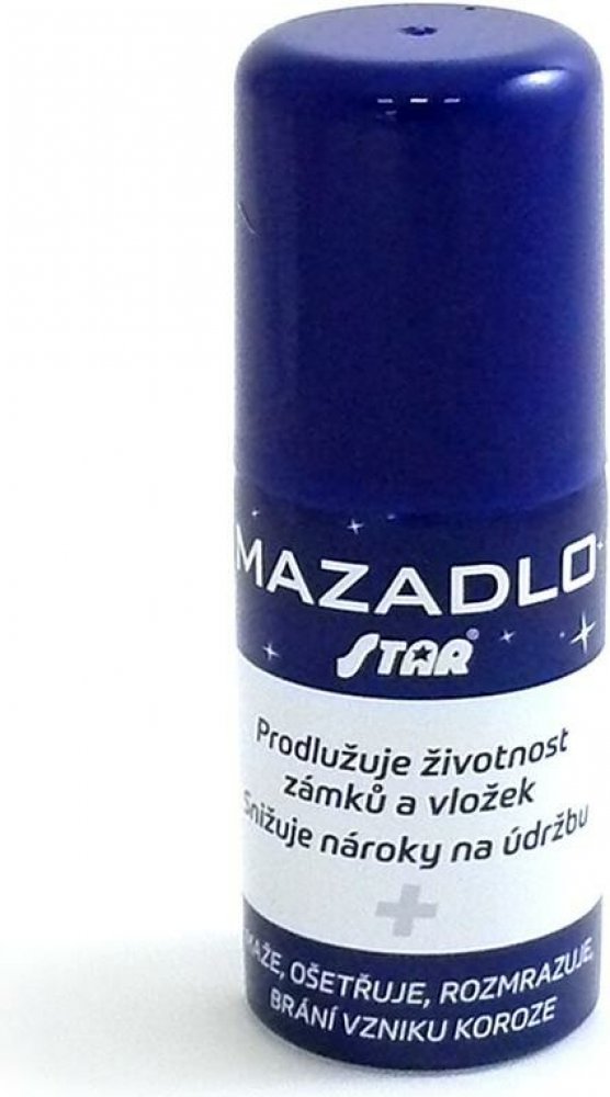 Mazadlo STAR je určeno pro péči o vložky vchodových dveří, autozámky a další typy zámků a vložek v interiéru i exteriéru. Na zámcích a vložkách vytváří ochrannou vrstvu, která zamezuje vzniku koroze a současně chrání před opotřebením. Mazadlo rovněž zlepšuje funkčnost zámků a vložek, prodlužuje jejich životnost a zabraňuje usazování nečistot. Jeho použití je vhodné rovněž v zimním období, kdy půso...