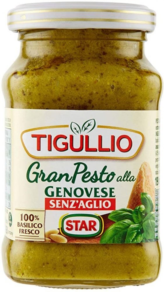 GranPesto Tigullio alla Genovese bez česneku, připravené z voňavé čerstvé bazalky zpracované bezprostředně po sklizni, aby byla zachována její intenzivní vůně a charakteristická chuť. Bezlepkový produkt.