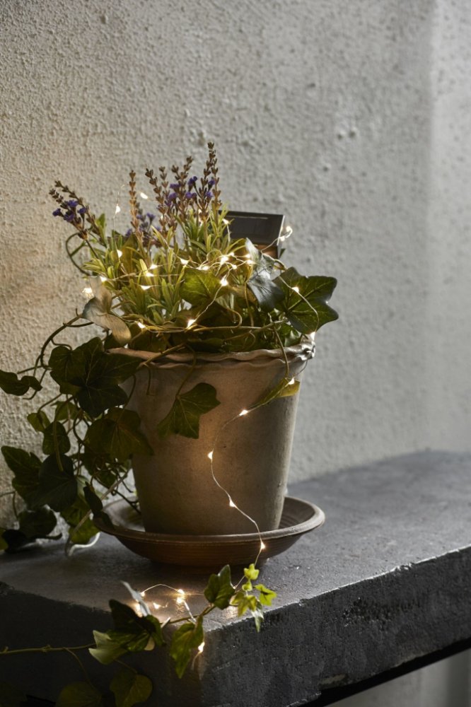Drobným stříbrným drátkem můžete ozdobit keř, omotat jím zábradlí, trám nebo cokoliv jiného vás jen napadne. Nikde navíc nebudete muset tahat kabel nebo se bát zkratu z baterií. Dokonalá venkovní dekorace!