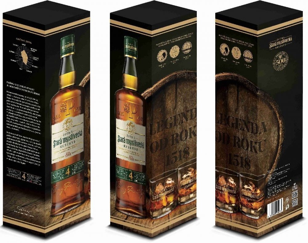 Stará myslivecká je zcela unikátním ryze českým nápojem, jehož historie sahá do začátku 16. Století. Základ Staré myslivecké tvoří pečlivě vybraný destilát, který zraje v dubových sudech společně s přírodními výluhy ze sušeného ovoce. Přesné složení a poměry těchto přísad jsou po staletí pečlivě střeženy. Vedle oblíbené Staré myslivecké originál vyzrála k dokonalosti ušlechtilejší RESERVE. Unikátní výrobní postup dvojího zrání ve vybraných sudech z bílého dubu po dobu čtyř let je to, co odlišuje Reserve od známější Staré myslivecké originál. Reserve zraje celkem 4 roky v dubových sudech. Nejprve ušlechtilý destilát zraje ve vybraných sudech z bílého dubu 3 roky. Posléze je tento destilát smíchán s přírodními výluhy ze sušeného ovoce a znovu uložen do dubových sudů na dobu jednoho roku. Výsledkem je jedinečná jemná chuť whiskového charakteru s hřejivým dozvukem sadového ovoce. Doslova gentlemanská záležitost.