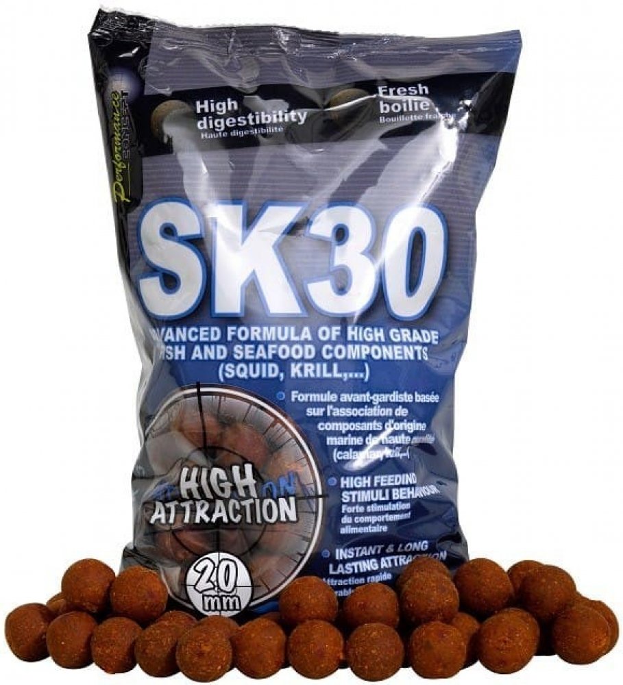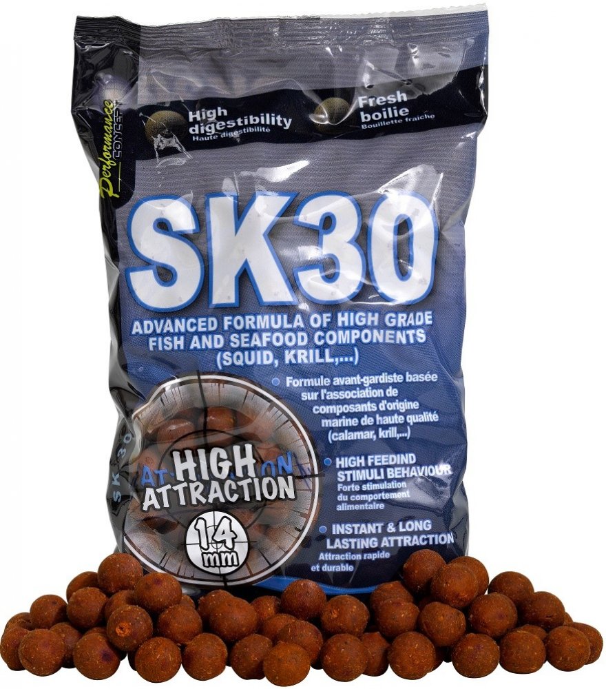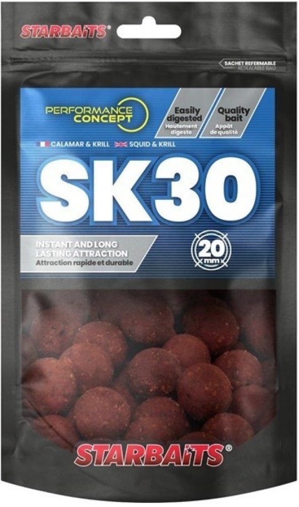 SK30 je bezesporu nejpoužívanější recepturou mezi závodníky na těch nejtěžších kaprařských soutěžích. Tajemstvím účinnosti SK30 na dlouhodobějších výpravách nebo závodech je kombinace špičkové olihňovo-krillové směsi s unikátním přírodním olejem, který vyvolává u ryb potravní závislost, čímž lze dlouhodobě udržet rybu na krmném místě.