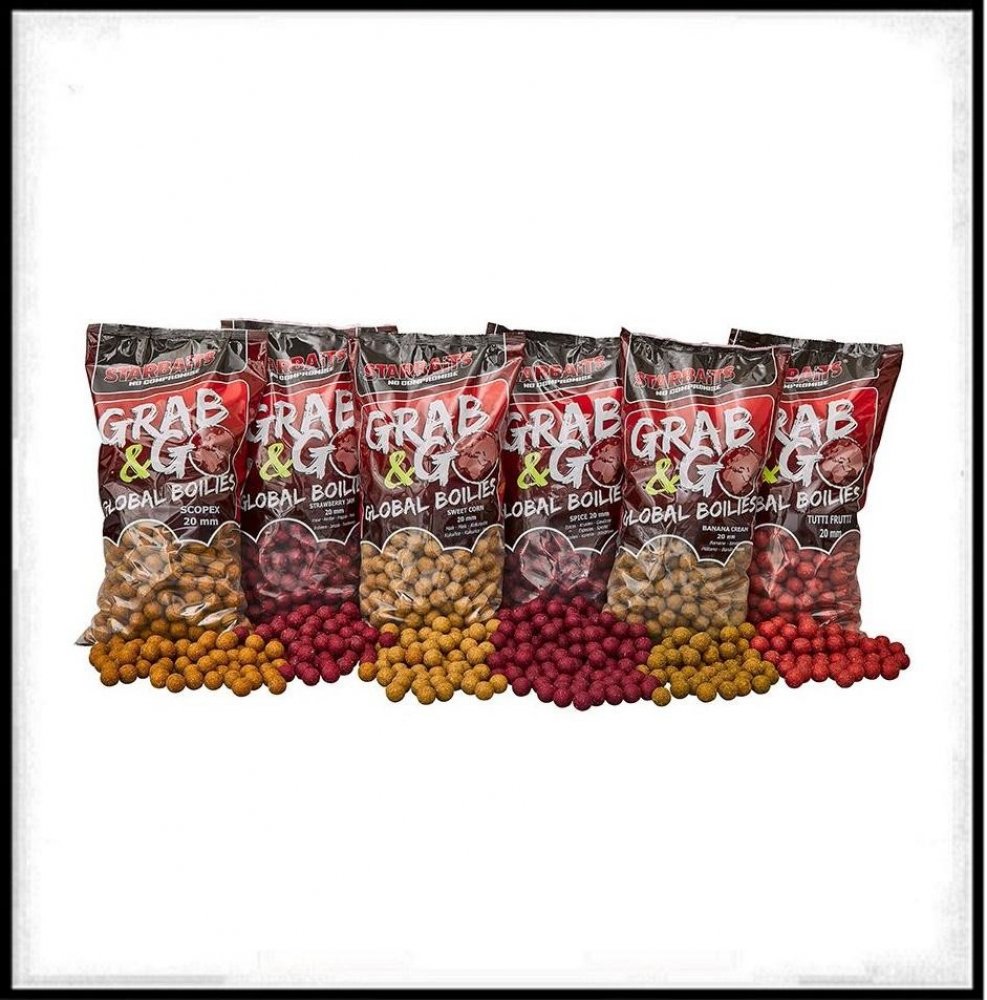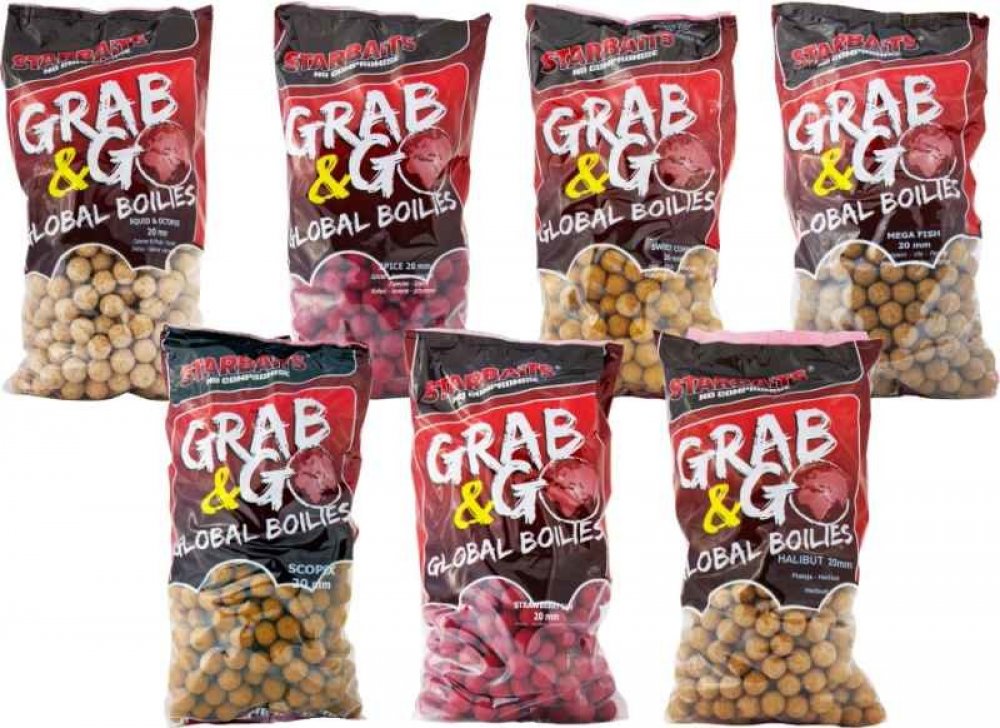 Grab & Go boilies je vytvorené z precízne vybraných komponentov s ideálnou kombináciou atraktantov. Nutrične vyvážené receptúry sú vhodné ako na kratšie výpravy a rýchle chytanie, tak aj na dlhodobé zakrmovanie. Boilies po vhodení do vody okamžite začína pracovať a lákať kapry. Vďaka vysokej stráviteľnosti G & G Global a použitým zložkám je to veľmi chutný zdroj potravy pre ryby, čo zase vytvorí dlhšie kúzlo krmného miesta, čo uľahčuje zachytávanie kaprov. Značka StarBaits G & G Global sa môže používať na rybolov v akomkoľvek prostredí, chladnom alebo horúcom.