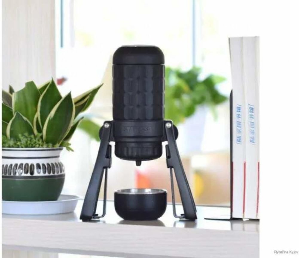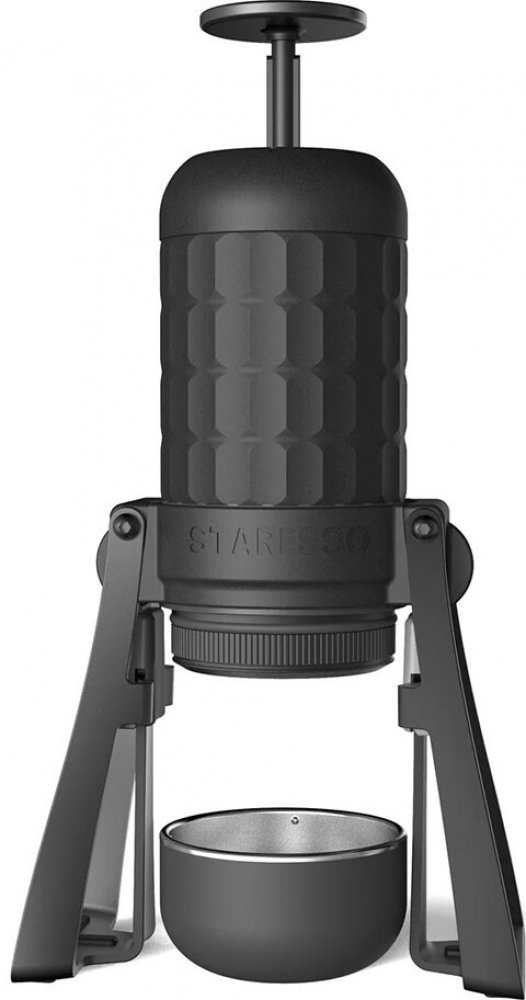 Zajímavá konstrukce ve tvaru vesmírné lodi se shrnovatelnými nožkami. Kávovar je velmi robustní konstrukce, kávu připravíte na jakémkoliv povrchu. Obsahuje i zabudovanou šálek na kávu.