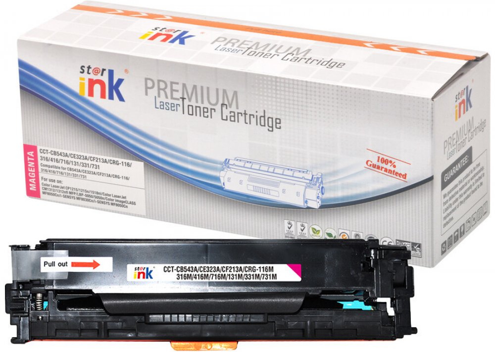 Značková kazeta Starink sloužící jako plnohodnotná náhrada originálního toneru, při zachování vysoké kvality, snadné instalace a nízké ceny. Tonerové kazety Starink dnes řadíme k tomu nejlepšímu co dnes svět alternativních kazet nabízí. Nesporně největším benefitem tonerových kazet Starink je cena, která jistě předčí cenu originálních kazet. Veškerá produkce je vyrobena v souladu s přísnými normami a ctí patentová ujednání. Samozřejmostí je zdravotní nezávadnost, testována v labořatoři ITC.