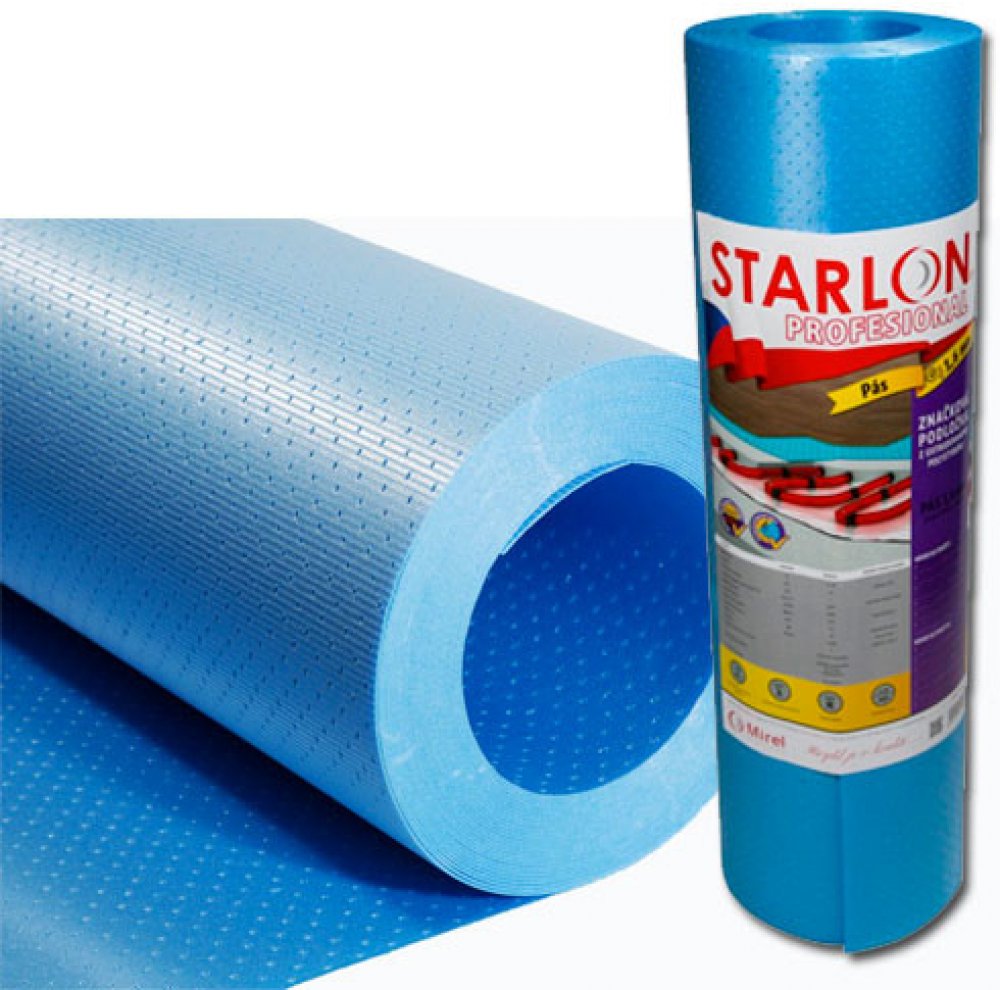 Kročejová izolace pod podlahu STARLON TOP role 1,6 mm (20m)STARLON® TOP je podložka speciálně vyrobena z XPS pěny a určená na podlahové topení. Systém drážek a děrování umožňuje optimální prostup a cirkulaci tepla a minimalizuje tepelné ztráty.Ideální řešení pro systémy podlahové vytápěníPoužitípodložka pod podlahy snižující kročejový hluk určená na elektrické i teplovodní podlahové topenívyvinut speciálně nad podlahové vytápěnívhodný pro všechny laminátové nebo dřevěné podlahy o tepelném odporu do 0,1 m2K/WVlastnostitlumí kročejový hlukodolává vysokému zatíženívyrovnává drobné nerovnostinenasákavýhygienicky a ekologicky nezávadnýbez zápachuTechnická dataTloušťka: 1,6 mmProvedení: roleŠířka 100 cmBalení: 20 bm (20 m2)