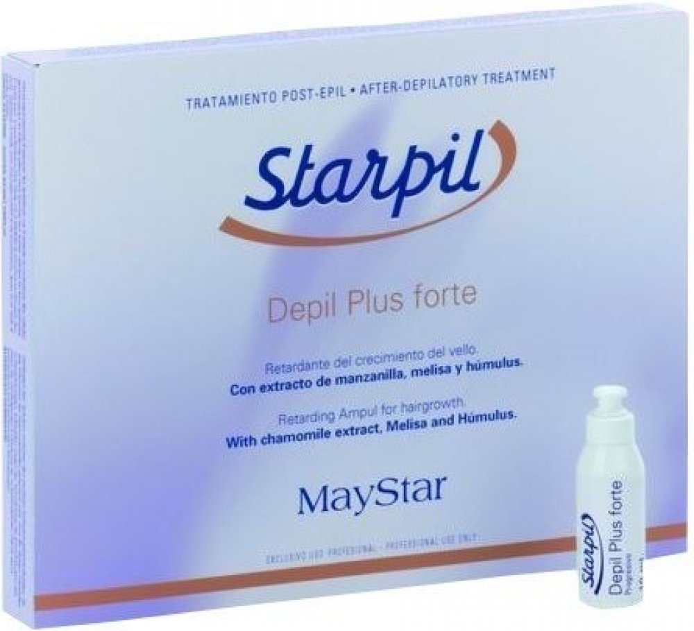 Starpil Ampule Forte proti růstu chloupků se používá k ošetření pokožky po depilaci voskem či cukrovou pastou. Prodlužuje dobu mezi depilacemi, oslabuje kořínek chloupku, zklidňuje pokožku.