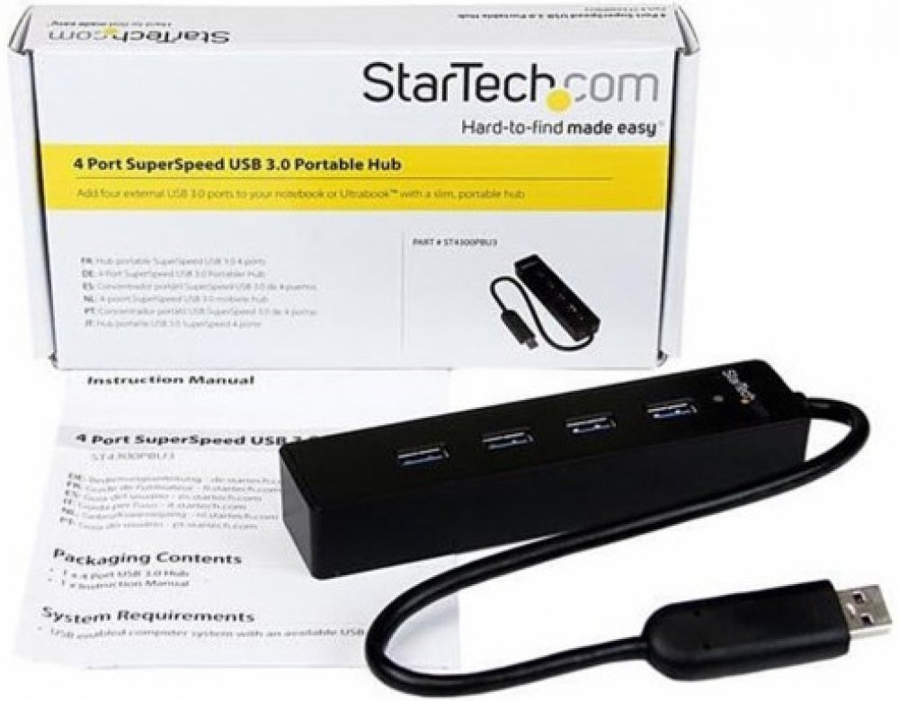 StarTech ST4300PBU3 4 Port USB 3.0 Hub (ST4300PBU3) StarTech.com ST4300PBU3. Rozhraní: USB 3.0 (3.1 Gen 1) Type-A, Rozhraní