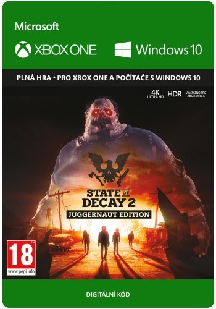 State of Decay 2 | Juggernaut Edition - Prožijte Zombie Apokalypsu State of Decay 2: Juggernaut Edition je ultimátní zážitek z přežití v zombie apokalypse, nyní vylepšený a optimalizovaný pro Xbox One a Windows 10. Tento digitální Xbox Live klíč vám poskytne přístup k plné hře, kterou můžete hrát globálně. Ponořte se do světa, kde každé rozhodnutí může znamenat život nebo smrt, a připravte se čelit hordám nemrtvých. Klíčové funkce: Simulace přežití s maximálním realistickým zážitkem: Budujte svou základnu, spravujte zdroje a vedete svou komunitu v prostředí, které je plné nebezpečí. Každý krok, který uděláte, má své následky, a smrt je trvalá. Obsah Juggernaut Edition: Tato edice zahrnuje původní hru State of Decay 2 spolu se všemi dříve vydanými dodatky, jako jsou Independence Pack, Daybreak Pack a Heartland, a také spoustu nového obsahu a vylepšení. Vylepšená hratelnost: Užívejte si lepší vizuální zpracování a plynulejší ovládání, které zajišťuje stabilní a vyladěný herní zážitek. Nová mapa Providence Ridge: Objevte zcela nové otevřené prostředí, které nabízí jedinečné výzvy a zdroje k nalezení. Kooperativní multiplayer: Spojte síly s až třemi přáteli a přežijte apokalypsu společně. Koordinujte své úsilí, sdílejte zdroje a bojujte proti hordám zombie jako tým. Systémové požadavky: Minimální požadavky: Procesor: Intel i5-2500 @2.7Ghz / AMD FX-6300 Grafika: NVIDIA GeForce GTX 760 2GB / AMD Radeon HD 7870 RAM: 8 GB Diskový prostor: 30 GB volného místa Systém: Windows 10 64-bit Doporučené požadavky: Procesor: Intel i5 4570 @ 3.2Ghz / AMD FX-8350 Grafika: NVIDIA GeForce GTX 1650 4GB / AMD Radeon R9 380 RAM: 16 GB Diskový prostor: 30 GB volného místa Systém: Windows 10 64-bit Podporované jazyky: English Okamžité doručení: Po zakoupení obdržíte digitální klíč e-mailem, který vám umožní začít hrát okamžitě. Nezmeškejte šanci prožít vzrušení a napětí ve světě State of Decay 2!