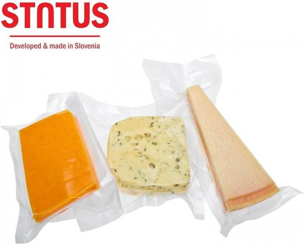 Užší 200mm fólie pro vakuování sýrů, zeleniny a masa chrání potraviny před vnějšími vlivy a zachovávají jejich kvalitu. Vakuování je skvělý způsob, jak zabalit potraviny před dlouhodobým uskladněním potravin v mrazáku, v lednici nebo ve spižírně. 20cm vakuovací folie v roli jsou vhodné pro skladování: Menších kusů potravin (sýry, maso apod.) Nakrájená zelenina (mrkev, květák, cuketa, brokolice apod.) Hub Bobulového ovoce Proč si vybrat vakuovou folii značky STATUS? Kompatibilní se všemi kvalitními vakuovačkami na trhu Díky vakuování se nevytváří námraza, která mění kvalitu, barvu i chuť potravin Tloušťka hladké vrstvy 100 µm a vroubkované vrstvy až 130 µm (klasické sáčky mají 20 µm) 4vrstvá folie – dokonalá nepropustnost a svár Vyrobeno ve Slovinsku z materiálů s původem v EU Vroubkované vakuové sáčky Opakovaně použitelné – možnost umývat v myčce Vhodné na vaření metodou Sous Vide Vhodné na skladování potravin v mrazáku Délku sáčku si sami zvolíte podle potřeby nařezáním fólie Zdravotně nezávadné sáčky s certifikacemi Proč je tloušťka vakuové folie tak důležitá? STATUS folie a sáčky jsou nejsilnější na trhu. Hladká vrstva má 100 µm a vroubkovaná vrstva má dokonce 130 µm. STATUS vakuovací folie zaručují nepropustnost a kvalitní svár, který neproteče. Chrání potraviny před vnějšími vlivy, protože jejich síla působí jako bariéra, která zabraňuje tvorbě námrazy i mísení zápachů z jiných potravin. Složení fólie a její síla zabezpečí, že sáček bude dobře uzavřený a potraviny kvalitně vakuované. Proč se vyplatí investovat do kvalitní folie? Vakuové folie značky STATUS jsou vhodné pro opakované použití. Sáčky je možné umývat v myčce nádobí: Opatrnost se vyplácí jen v případě použití sáčků, ve kterých jste skladovali surové maso nebo ryby. Dbejte na důkladné umytí, nebo maso nejprve vložte do obyčejného mikrotenového sáčku a následně do folie. Vakuovací sáčky můžete používat neustále. Pro vás to znamená velké úspory v peněžence a příroda vám také bude vděčná. Kvalita ověřená certifikáty Vakuové folie STATUS jsou vyrobené ve Slovinsku výhradně z materiálů s původem v EU a mají všechny potřebné certifikáty potřebné pro bezpečné skladování potravin v mrazáku a na vaření Sous Vide. Vytvořte si vlastní sáček Vakuové role jsou nejlepší volbou pro vakuování potravin různých velikostí nebo při přípravě balíčků zeleniny a masa na různé pokrmy. Délku sáčku můžete dokonale přizpůsobit potravinám, které chcete uskladnit. Užší folie v rolkách jsou pro skladování menších kousků sýra, nakrájených steaků, zeleniny, hrášku, fazolek, lesních plodů, sušeného ovoce a dalších potravin vhodné velikosti Výhody vakuového skladování Skladování potravin ve vakuu prodlužuje trvanlivost potravin až čtyřnásobně, protože odstraněním kyslíku nemají bakterie potřebné podmínky pro přežití. Vakuováním výrazně zpomalíte oxidaci, která způsobuje rozvij plísní, kažení potravin, změny chuti, vzhledu i vůně. Vaše vakuově balené potraviny (i mražené) si zachovávají svou původní chuť i vitaminy. Vakuování je způsob, jak eliminovat potravinový odpad a ušetřit v domácnosti. Vakuovačka potravin je skvělý pomocník do každé domácnosti, maximalizujte její efekt a investujte i do stejně kvalitních vakuových sáčků a folií. Dejte stop plýtvání jídlem. Vakuové fólie 20 x 300 cm, 4ks TLOUŠŤKA ČTYŘVRSTVÉ FÓLIE: