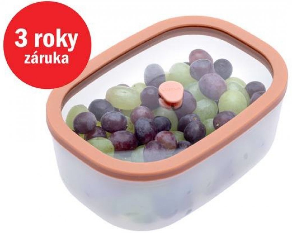 Zásadní přednosti produktu STATUS 177153 Fresko Vakuová dóza 0,9 l lososová Vakuová dóza STATUS je vhodná k uchování potravin Přispěje k přehlednému uspořádání nejen v kuchyni Praktická obdélníková konstrukce dózy Plastová dóza je lehká a snadno se udržuje Nasazovací víčko vám umožní potraviny zavakuovat Víko je vyrobeno ze skla Nabízená dóza je vhodná do mikrovlnné trouby, myčky a mrazáku Skvěle těsní a zabezpečí spolehlivé uzavření obsahu Bez obsahu BPA Vakuování má navíc vliv na prodloužení čerstvosti jídla Objem je 0,9 l Má rozměry 7,5 × 17,5 × 12,5 cm (vך×h)