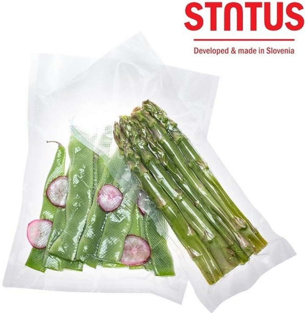 Fólie a sáčky STATUS jsou bezpečné pro potraviny, zachovávají jejich chuť a živiny a neabsorbují pachy. Jsou určeny pro dlouhodobé skladování všech potravin a patří k nejsilnějším na trhu (skládají se ze 4 vrstev). Drážkovaná dvouvrstvá strana má tloušťku až 130 μm (mikronů), hladká dvouvrstvá strana má tloušťku 100 μm. Tvoří dostatečnou bariéru proti vnějším vlivům.Materiály pro výrobu jsou evrop...