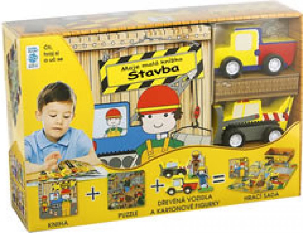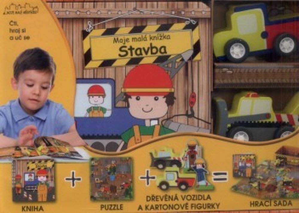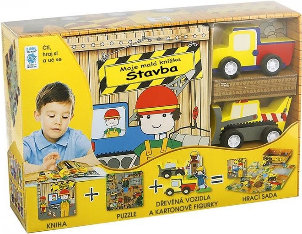 Souprava nabízí nekonečné možnosti k učení a hře. Na 64 stránkách knihy se seznam se stavebními stroji a stavbou a poté s využitím krabice, hraček a puzzle vytvoř vlastní staveniště velké budovy. Všechny cesty v jednotlivých skládačkách na sebe navazují, takže nasbíráním více hracích sad můžeš vytvořit celé městečko.