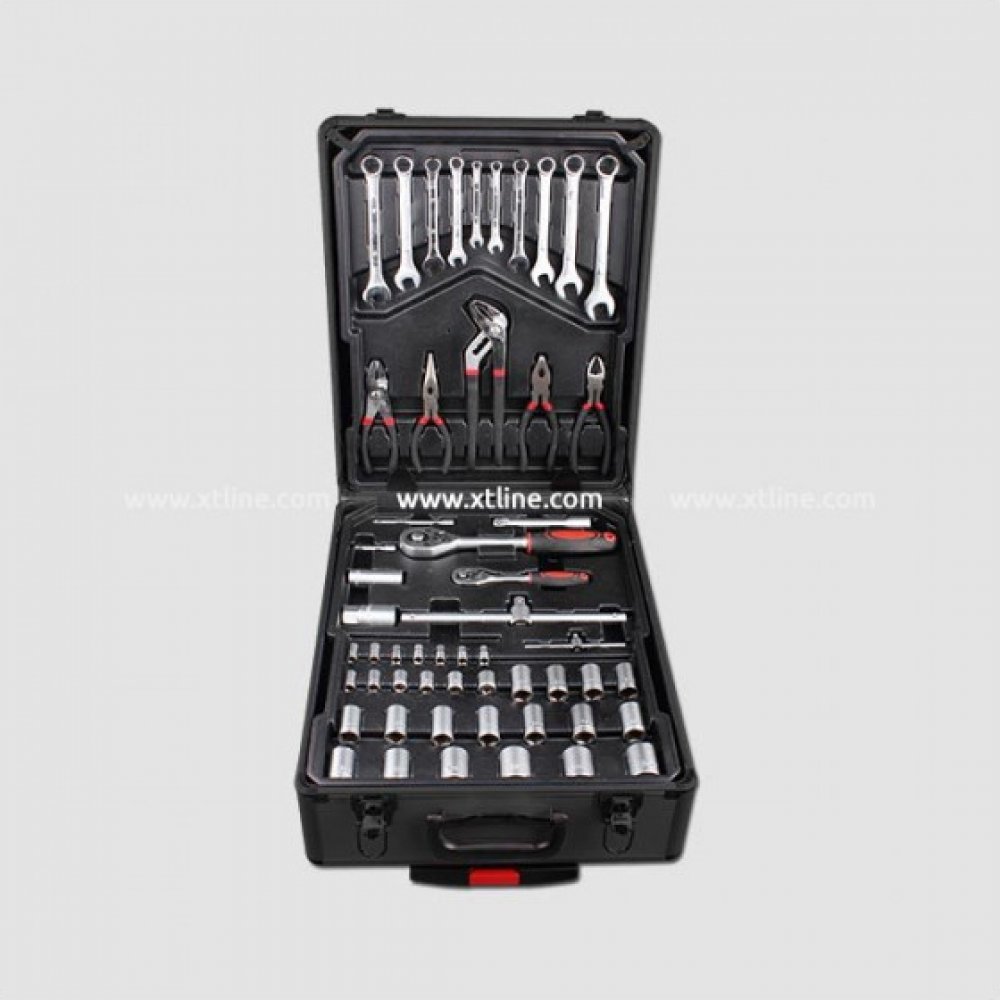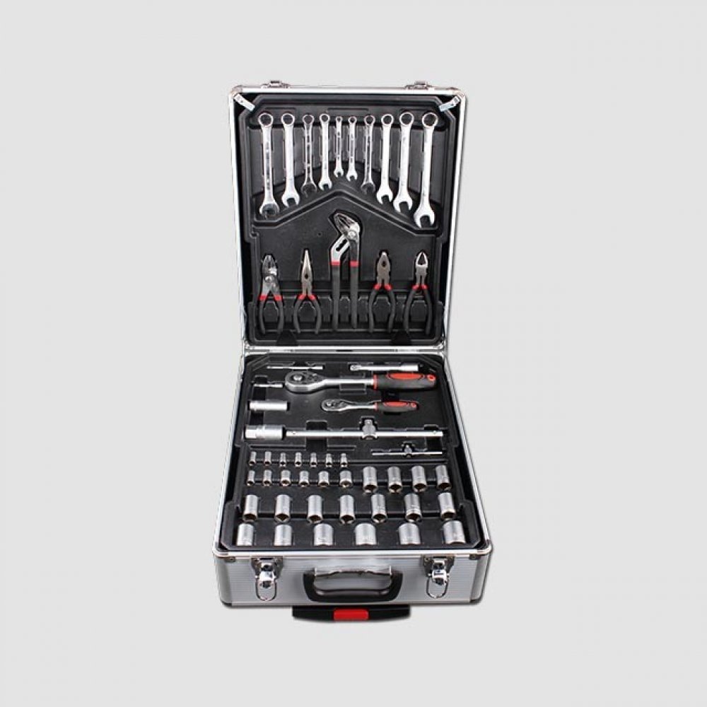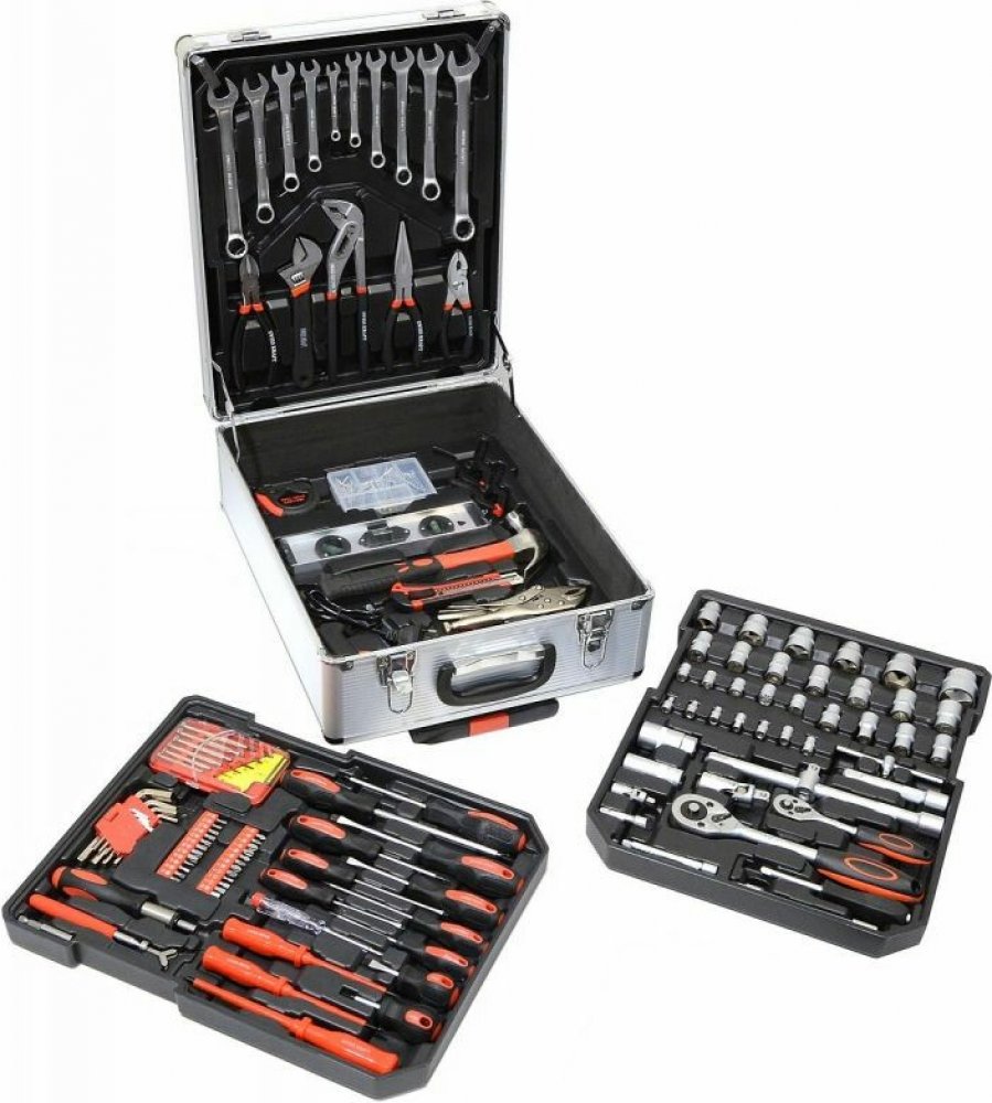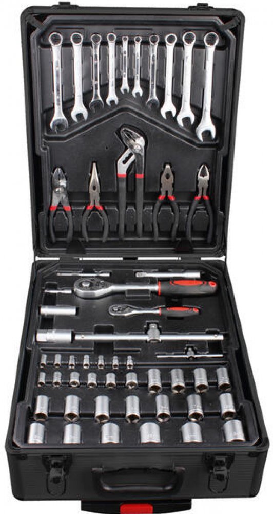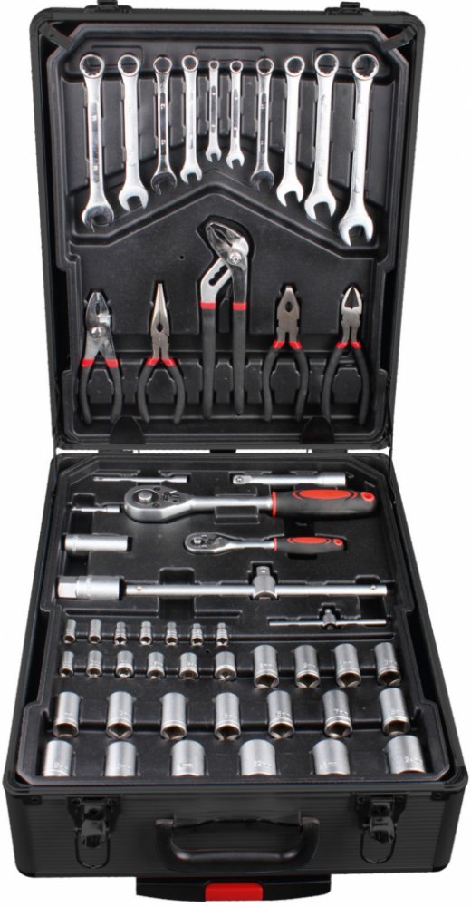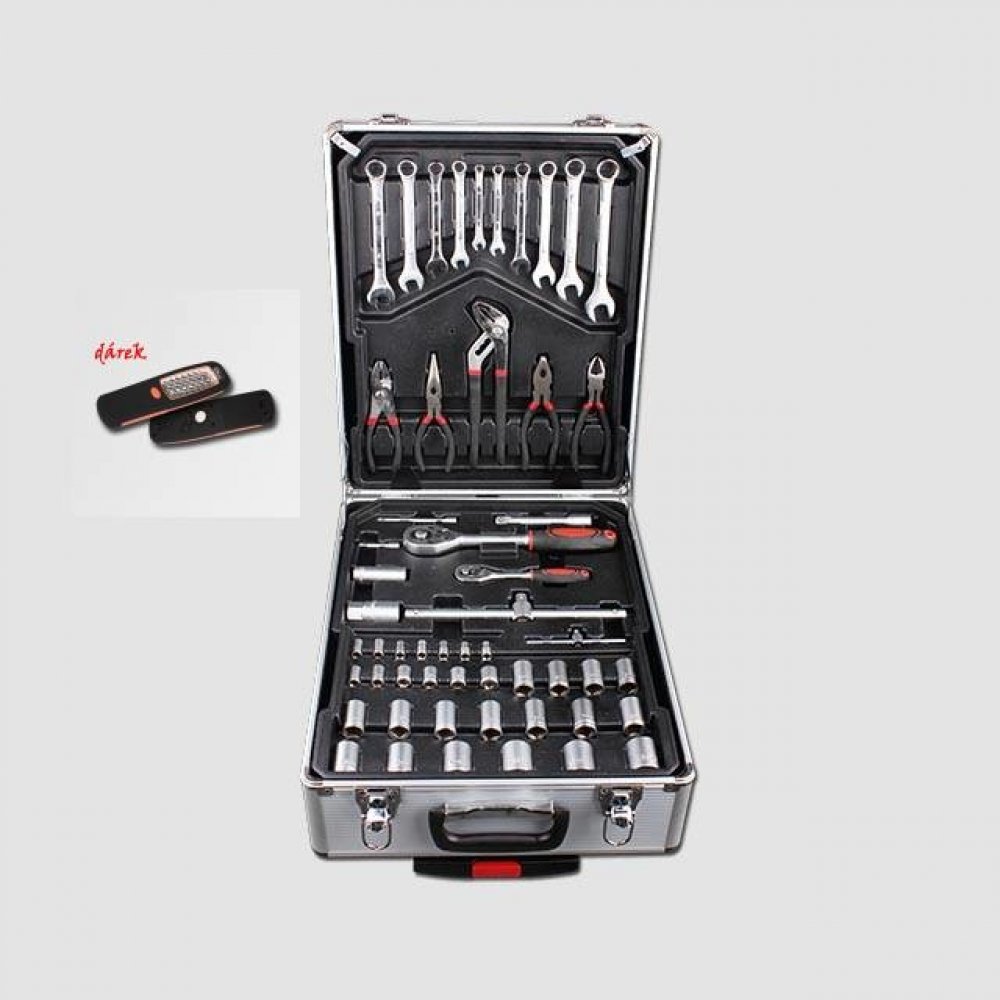 Nabízíme vám k zakoupení velmi kvalitní a "našlapanou" sadu nářadí. Veškeré vybavení je uloženo v hliníkovém kufru, který je zespod osazen kolečky pro snadnější manipulaci. Samozřejmostí je i teleskopické madlo, které můžete vytáhnout v případě potřeby a bez námahy kufr s nářadím přemístit jinam. Nářadí v tomto kufru je uloženo v plastových platech s prolisy, ve kterém veškeré vybavení tohoto kufr...