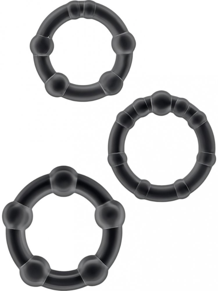 Sada Stay Hard Beaded Cock Rings obsahuje tři různé velikosti korálkových erekčních kroužků, které můžeš použít jednotlivě nebo klidně i dohromady pro extra tvrdou erekci a oddálení vyvrcholení.Proč je to super?Tři velikosti pro větší variabilitu a pohodlí.Podporuje tvrdší a déle trvající erekci.Pomáhá s oddálením předčasné ejakulace.Jsou hodně pružné a pohodlné na nošení.Bezpečný materiál pro tělo, neobsahuje ftaláty.Na co si dát bacha:Nenos kroužky déle než 30 minut v kuse.Při bolesti, necitlivosti nebo změně barvy okamžitě sundej.Po použití (i před) vždy umyj v teplé vodě s mýdlem.Po usušení skladuj nejlépe v původním obalu.Jak použít:Vyber si správnou velikost podle toho, jaký efekt chceš.Natahni kroužek a nasaď ho na kořen penisu nebo kolem šourku.Doporučujeme použít lubrikant na vodní bázi pro snadné a příjemné nasazení.V balení najdeš3 korálkové erekční kroužky v různých velikostechSpecifikace produktuMateriál: bezpečný TPEBez ftalátůBarva: černáRozměry:Malý kroužek: vnitřní průměr 2 cmStřední kroužek: vnitřní průměr 2,2 cmVelký kroužek: vnitřní průměr 2,4 cmDoporučení k čištění: Důkladně opláchnout jemným mýdlem a teplou vodou, opláchnout a nechat oschnout. Ideálně použít speciální čisticí prostředek (06302500000) - lze dokoupit zvlášť.