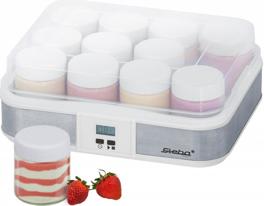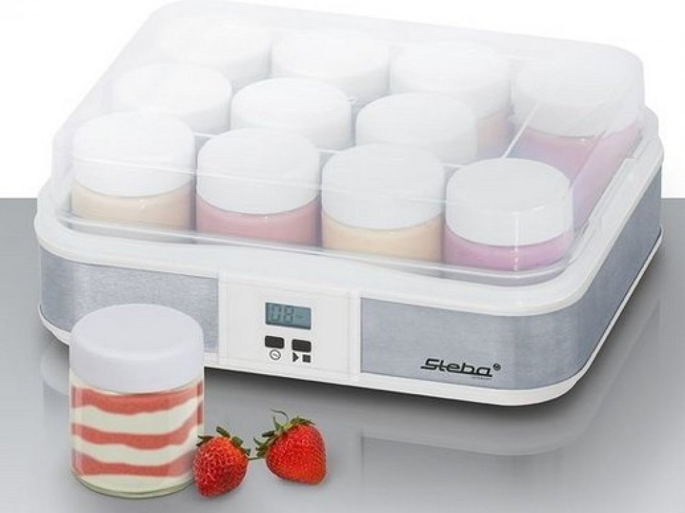 Steba JM 2 je elektronický automatický jorgurtovač s elegantním vzhledem o rozměrech 12,5 x 31 x 25 cm a příkonem 21W. Jogurtovač má 12 skleniček s víčkem o celkovém objemu 2,4 l. Velmi užitečnou funkcí tohoto jogurtovače je časovač, který umožňuje různou konzistenci jogurtů. Součástí balení je kniha s recepty.