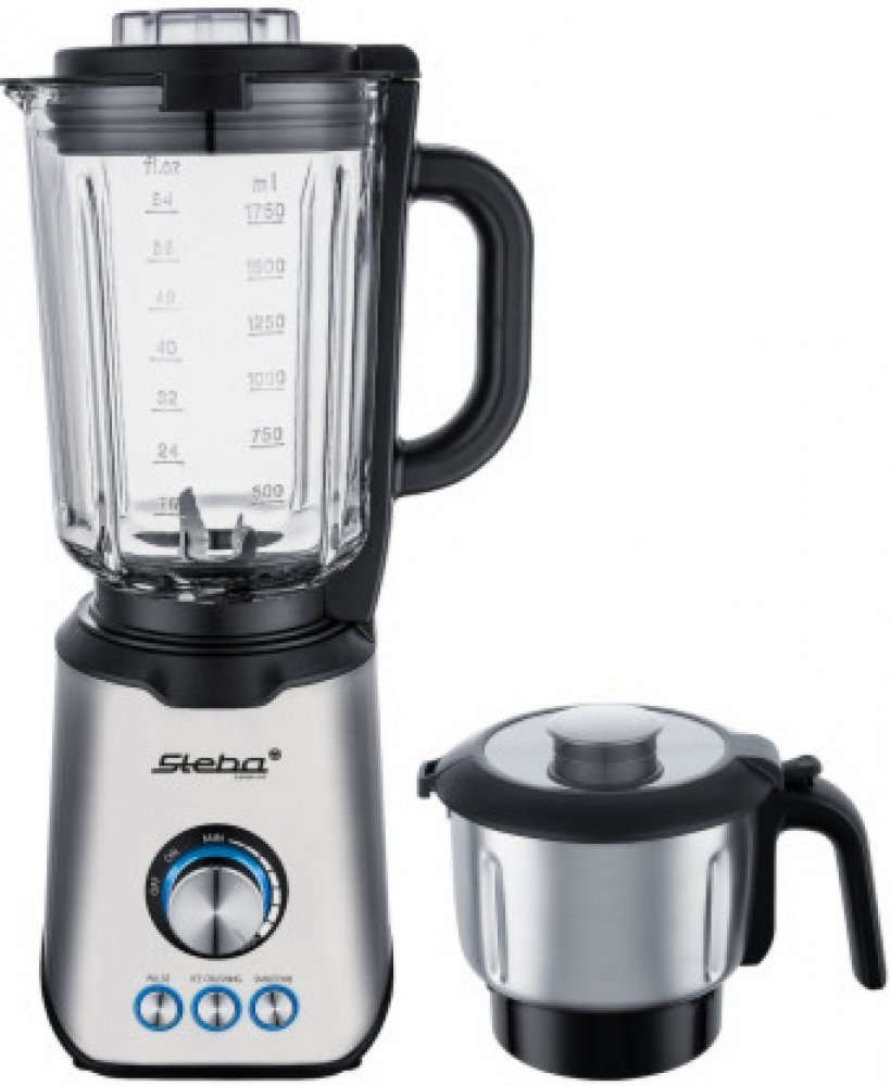 Mixér Steba MX 4 PlusVlastnosti:Kartáčovaný nerezový plášťTepelně odolná skleněná nádoba: objem 1,75 litruvysoce výkonný motor s příkonem 1200 WPlynulá regulace otáček3 automatické programy:SmoothieDrcený ledPulzní tlačítkonůž s 6 čepelemi z nerezové oceli, vyjímatelný pro čištěníVíko s otvorem pro doplňováníModře podsvícený displejProtiskluzové gumové nožičky pro pevné postaveníČásti vhodné pro mytí v myčce nádobíBezpečnostní mikrospínačVčetně nerezového sekáčku, např. na ořechy, sýr, pesto atd.Příkon: 1200 W (230 V )Hmotnost: 4,7 kgRozměry (v / š / h): 42,5 x 21 x 17,5 cmTechnické údajeVýkon - jmenovitá spotřeba (ve wattech)1200Funkce spotřebiče - přídavné otevírání víkaAnoFunkce spotřebiče - Integrovaná odměrkaAnoObecné - Barvastříbrná / černáFunkce spotřebiče - Turbo úroveňNeFunkce spotřebiče - lze mýt v myčce nádobíodnímatelné části vhodné do myčky nádobíFunkce spotřebiče - nastavení rychlostiplynulý chodFunkce spotřebiče - kapacita (litry)1,75Funkce spotřebiče - mixovací nádobaSklo Důležité upozornění: Upozorňujeme, že elektrické práce mohou provádět pouze kvalifikovaní elektrikáři nebo pod jejich vedením a dohledem. V případě potřeby dodržujte odchylné normy a předpisy pro elektroinstalaci platné v dané zemi a požádejte o radu místního elektrikáře. Jednotky s připojenou zátěží > 380V/400V vyžadují připojení k elektrické síti a smí je připojovat pouze autorizovaný elektrikář. U jednotek se jmenovitým výkonem > 12 kW potřebujete souhlas provozovatele sítě (Německo, jiné země se mohou lišit).Provedení Stacionární mixér, Připojovací hodnota 1200 W, Plynulá regulace výkonu ano, Nádrž Sklo, Objem 1,75 l, Základní barva Nerezová ocel, Provedení v sadě ne, Rozšiřitelné ne, Šířka 210 mm, Výška 425 mm, Hloubka 175 mm