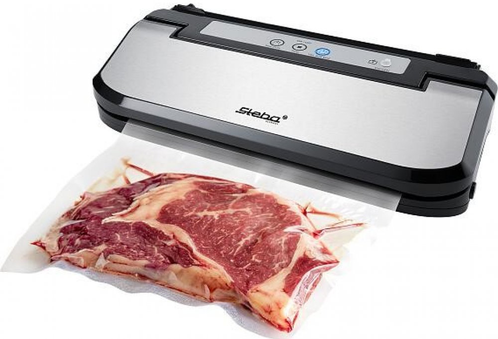 Výkonná vakuová svářečka fólií Steba VK 7 s dvojitým těsněním, pro domácí i profesionální uchovávání potravin v mrazáku a chladničce s garanci 97% vakua. Používá odolné profesionální drážkované fólie. Tyto fólie se vyrábějí z materiálu o vyšší hustotě. Mohou být mraženy, vařeny a lze je bezpečně použít i v mikrovlnné troubě. Drážkování na folii pomáhá vytvořit vzduchotěsný spoj – spoj má větší trv...