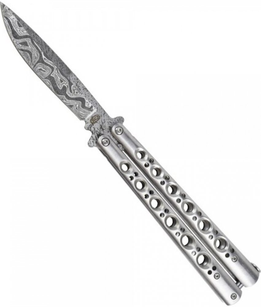 Nůž SCK Damask black, motýlek Nože motýlkové konstrukce svou čepel skrývají v otevírací rukojeti. Pohybem zápěstí rozevřete rukojeť nože, čímž se vymrští čepel kruhovým pohybem s druhou částí rukojeti, kterou nakonec sevřete. Tento typ nože můžete používat standardně jako každý jiný zavírací nůž. Díky svému způsobu rozevírání je častěji využíván k tréninku motoriky a zábavě. Čepel motýlkového nože...