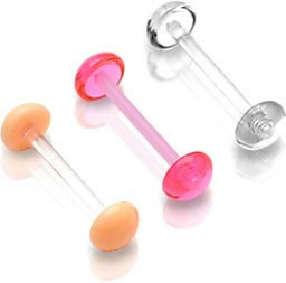 Nemůžete za všech okolností nosit piercing v jazyku ? Nevadí, díky této bioplastové náhradě, se nemusíte bát, že vám vpich "zatáhne. Dřík piercingu je dlouhý 16mm, průměr dříku 1,6mm, průměr polokuliček 6mm. Náhražka piercingu do jazyka průhledná