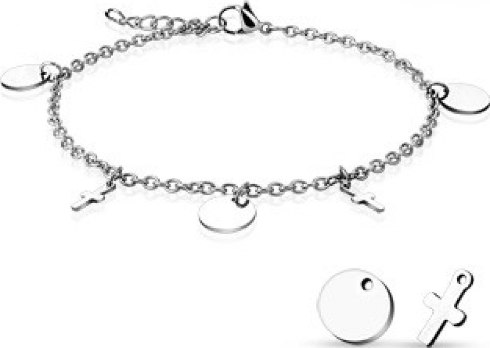 v rozmezí 22–25cm. Náramek na kotník z chirurgické oceli s přívěsky. Všechny ocelové