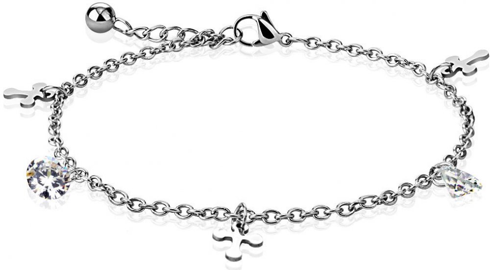 náramku lze nastavovat v rozmezí 22–25cm. Řetízek na kotník z chirurgické oceli má jako všechny ocelové šperky