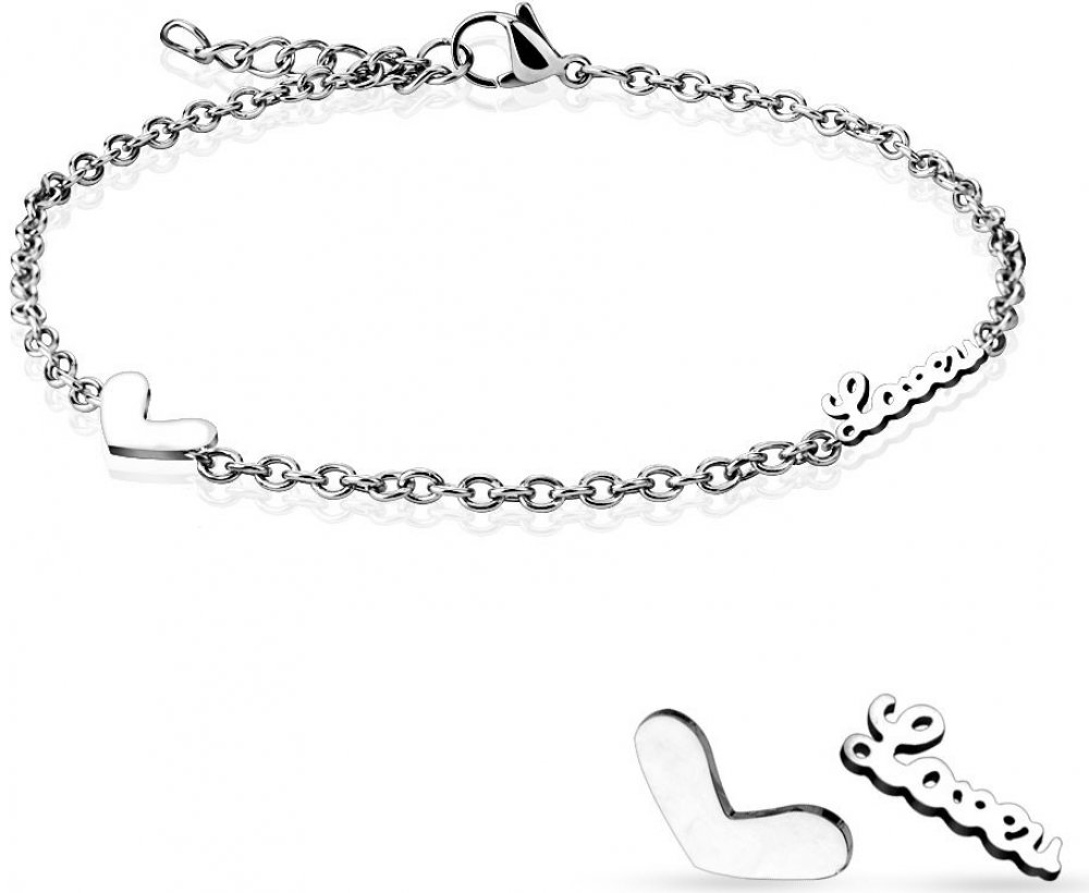 Řetízek na nohu z chirurgické oceli se srdíčkem a nápisem Love.