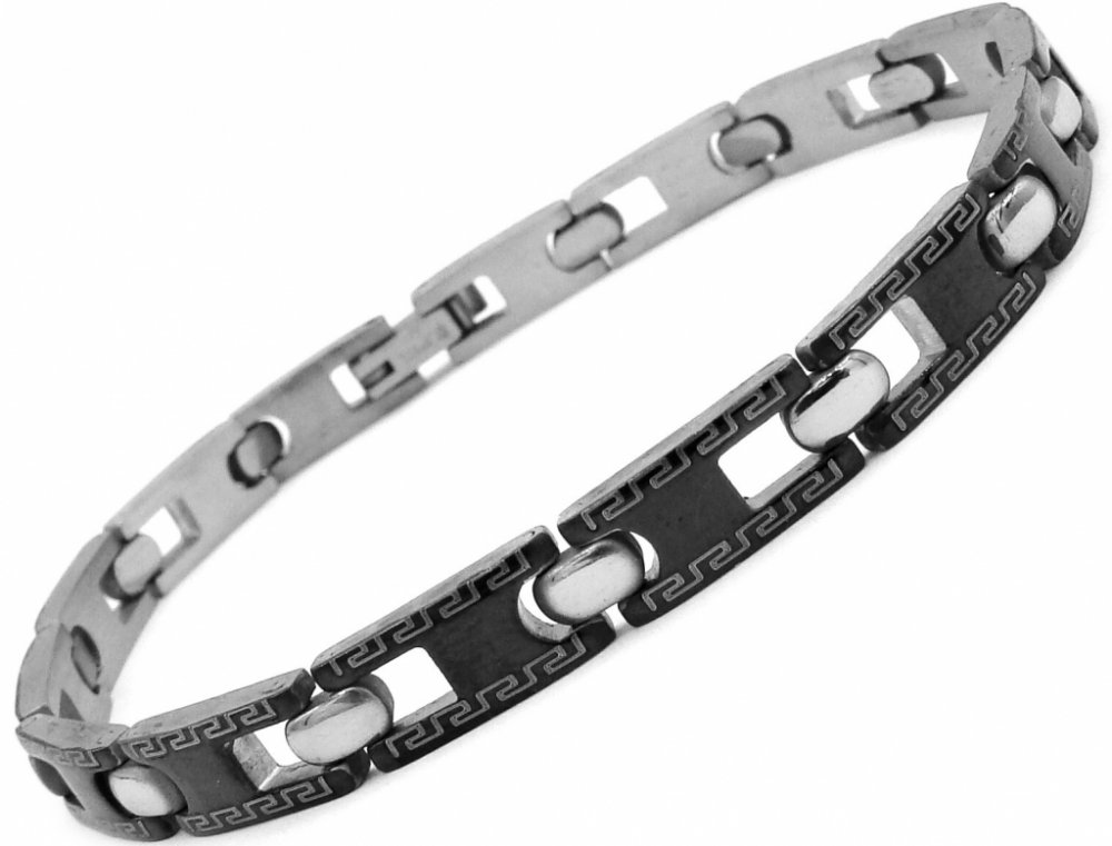 Materiál - chirurgická ocel. Materiál - chirurgická ocel - hypoalergenní (mohou ho nosit i lidé s alergií na bižuterii nebo stříbro). Náramek je vytvořen z materiálu, který je známý pro svou odolnost. Náramek z chirurgické oceli je hypoalergenní, tzn., že nevyvolává žádné alergické reakce. Náramek – chirurgická ocel je barevně stálá a nemění svoji barvu a je vysoce odolná vůči otěru a poškrábání. ...