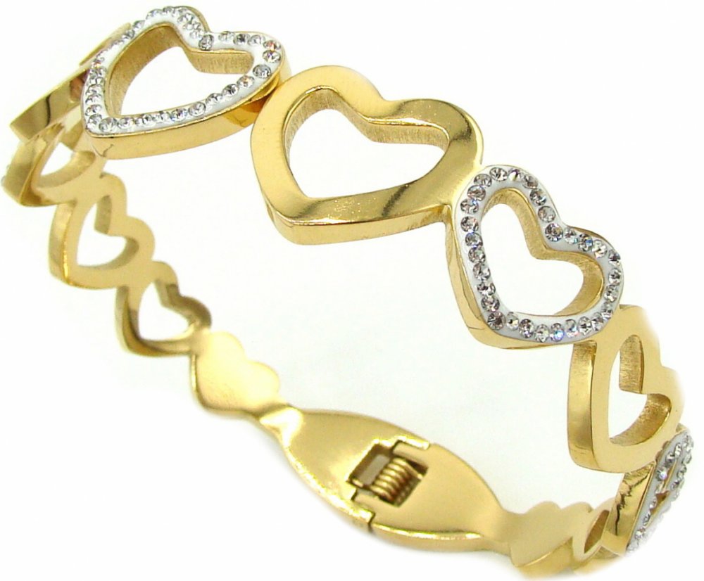 Luxusní náramek z chirurgické oceli osázené kamínky - srdce - viz foto