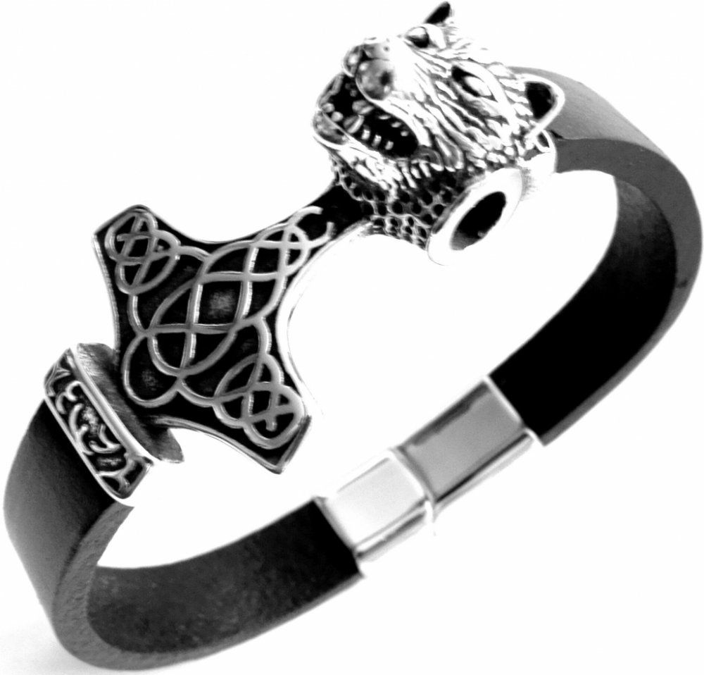 Steel Jewelry náramek Vlk černý kožený s kombinací chirurgické oceli NR180416
